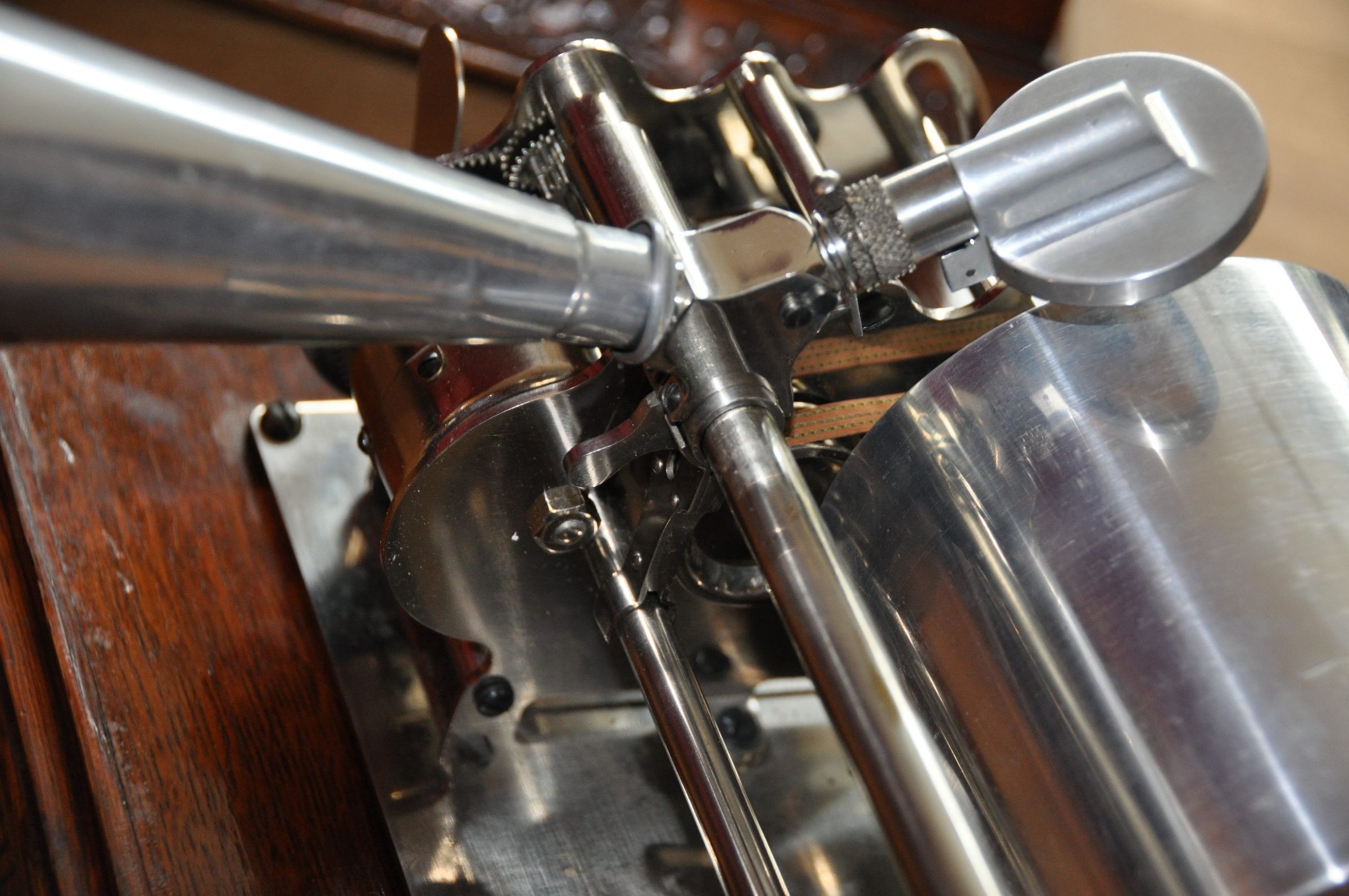 Mandrel: telescoping design – capable of playing both large concert cylinders (12.7 cm) and regular 2-minute standard cylinders.