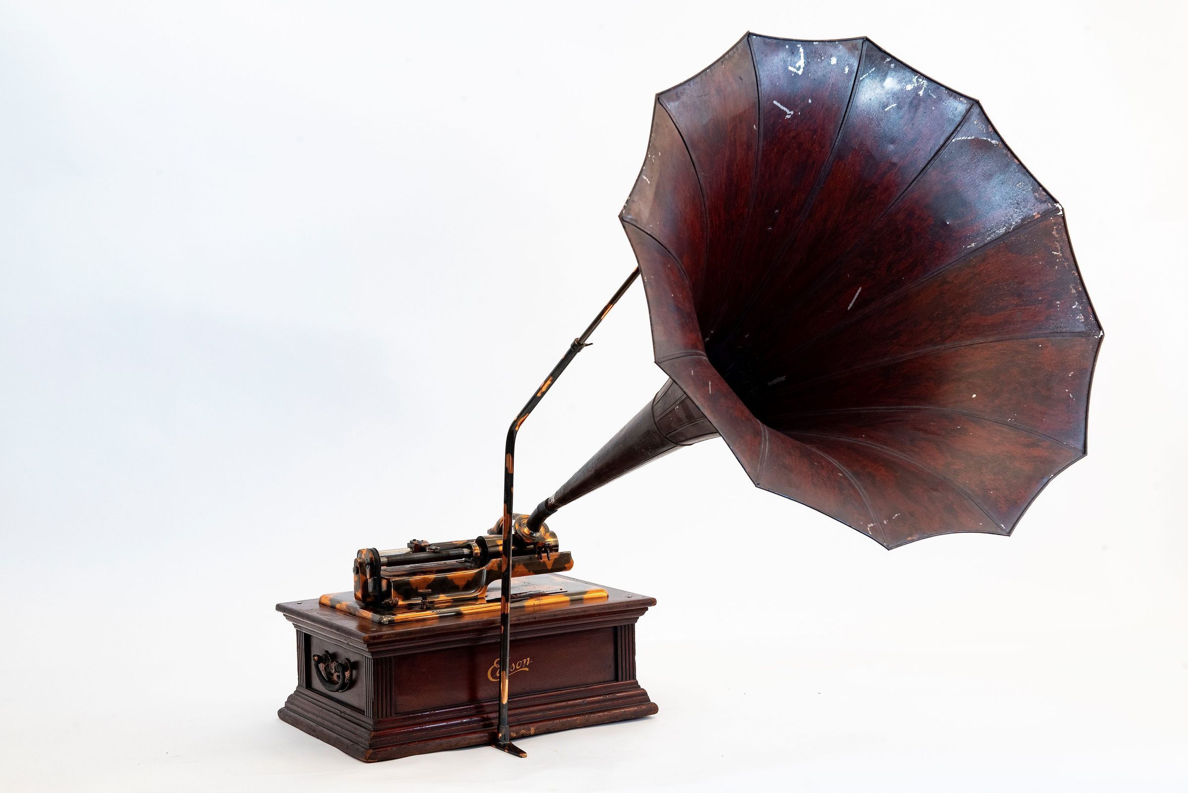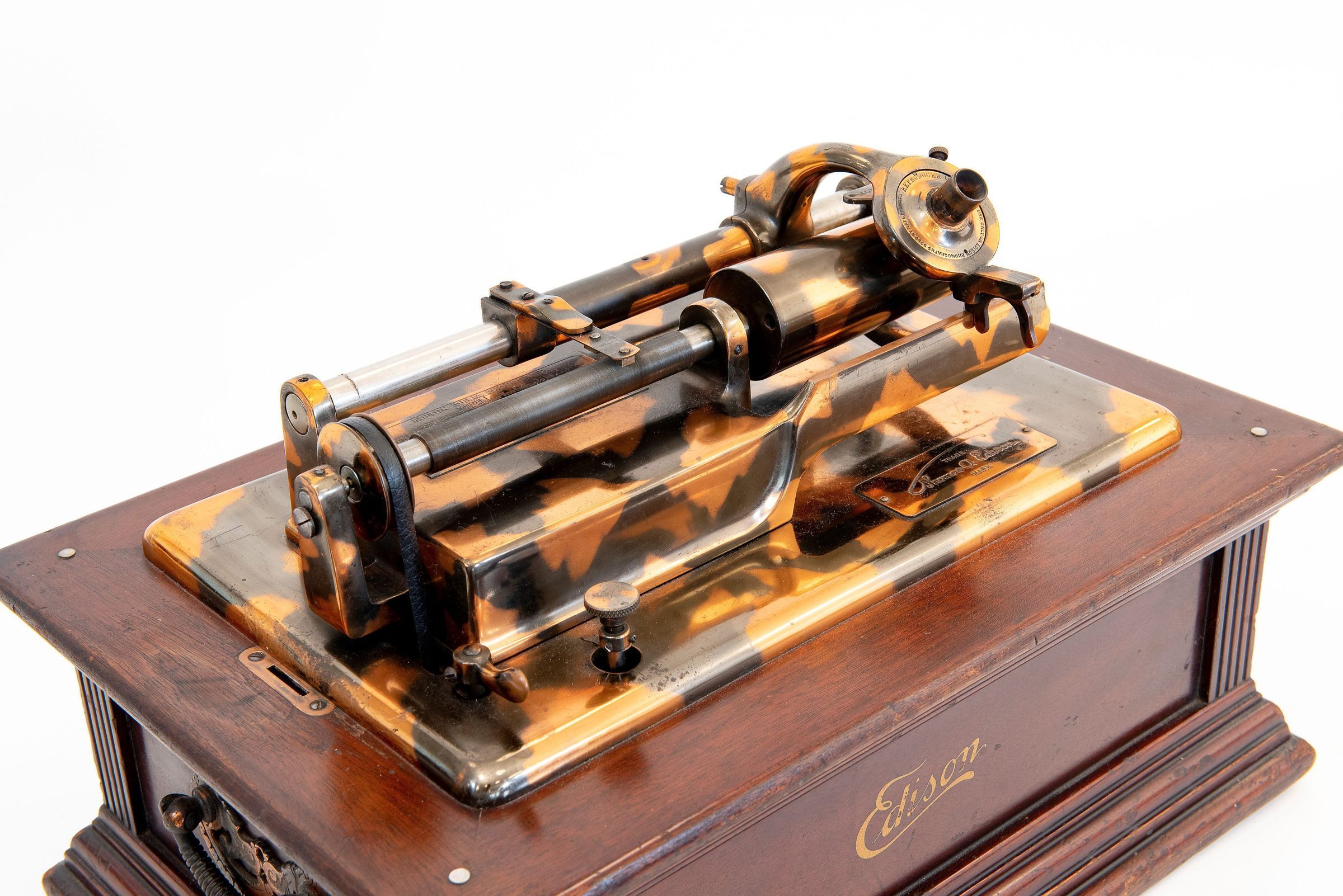 The example displayed at the Edisonium is a key piece for understanding Edison’s marketing strategy and design ambitions during the golden age of the cylinder phonograph. It represents the peak of decorative elegance in phonograph manufacture, uniting Edison’s technological mastery with the luxurious furniture aesthetics of the early 20th century.