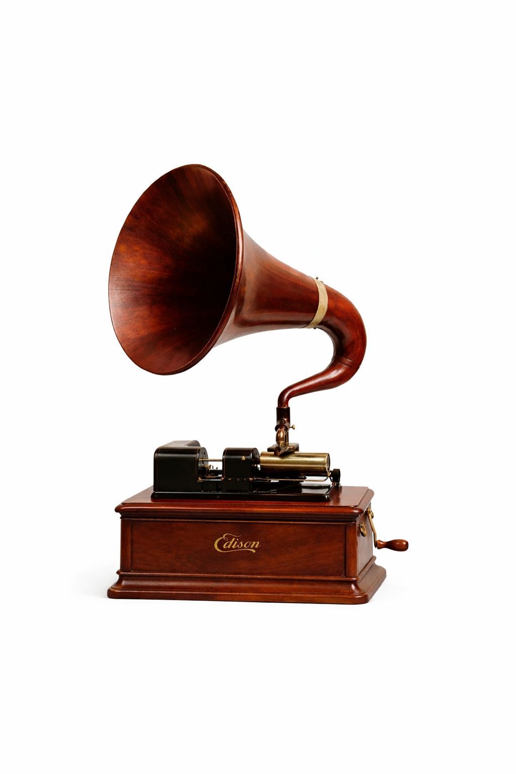 The Edisonium’s displayed model is the mahogany version, featuring elegant gold pinstriping and the classic Edison logo.