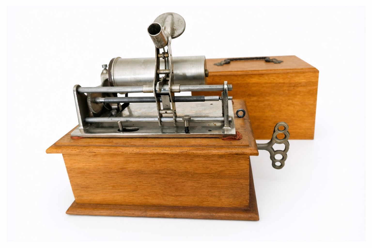 Due to its refined engineering, it was widely copied by other Berlin workshops. This model embodies the successful combination of industrial precision, technical advancement, and aesthetic design – a milestone in German phonograph manufacturing.
