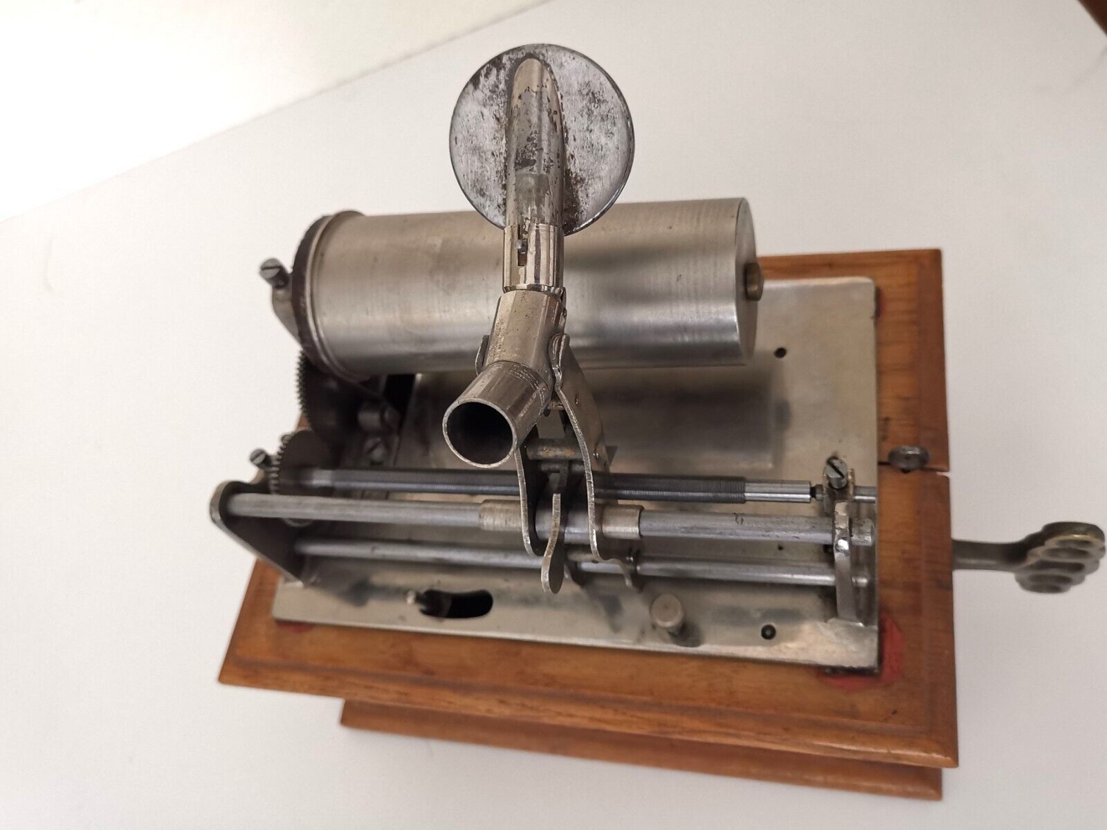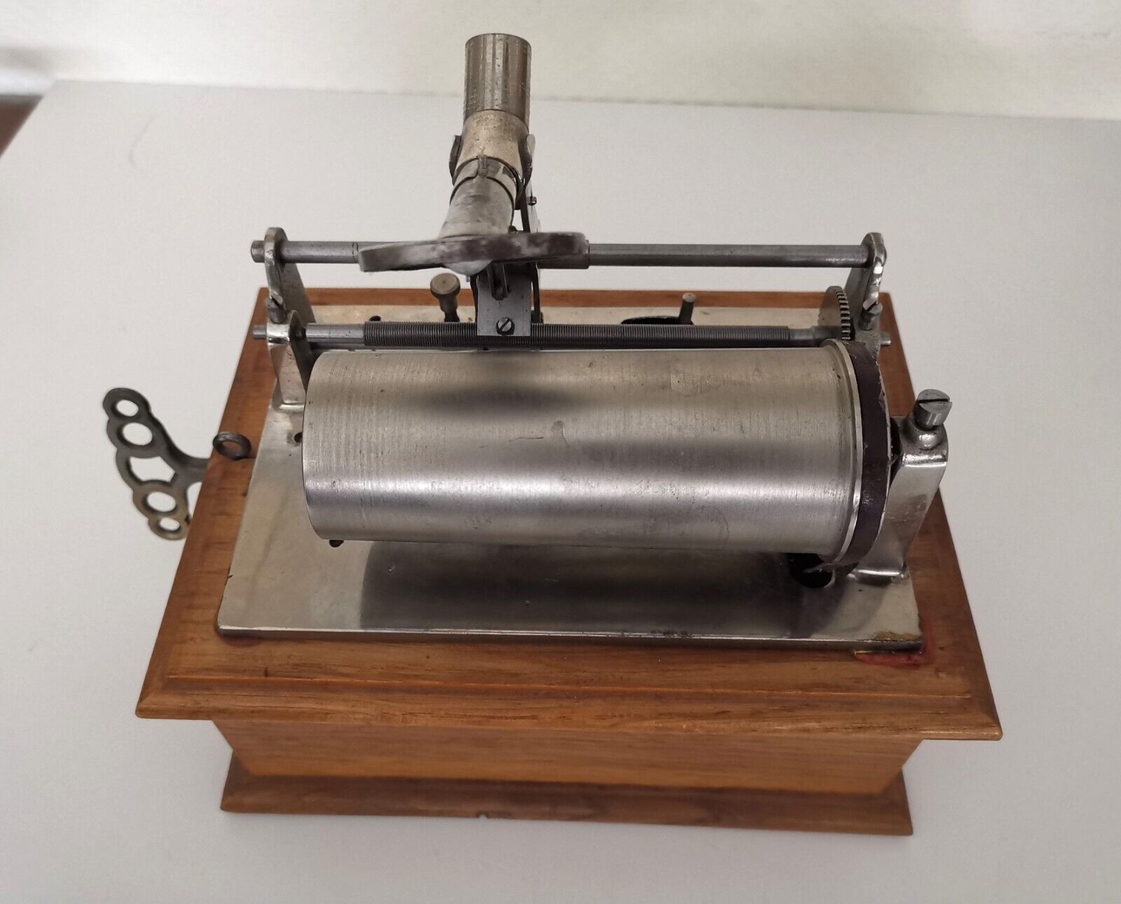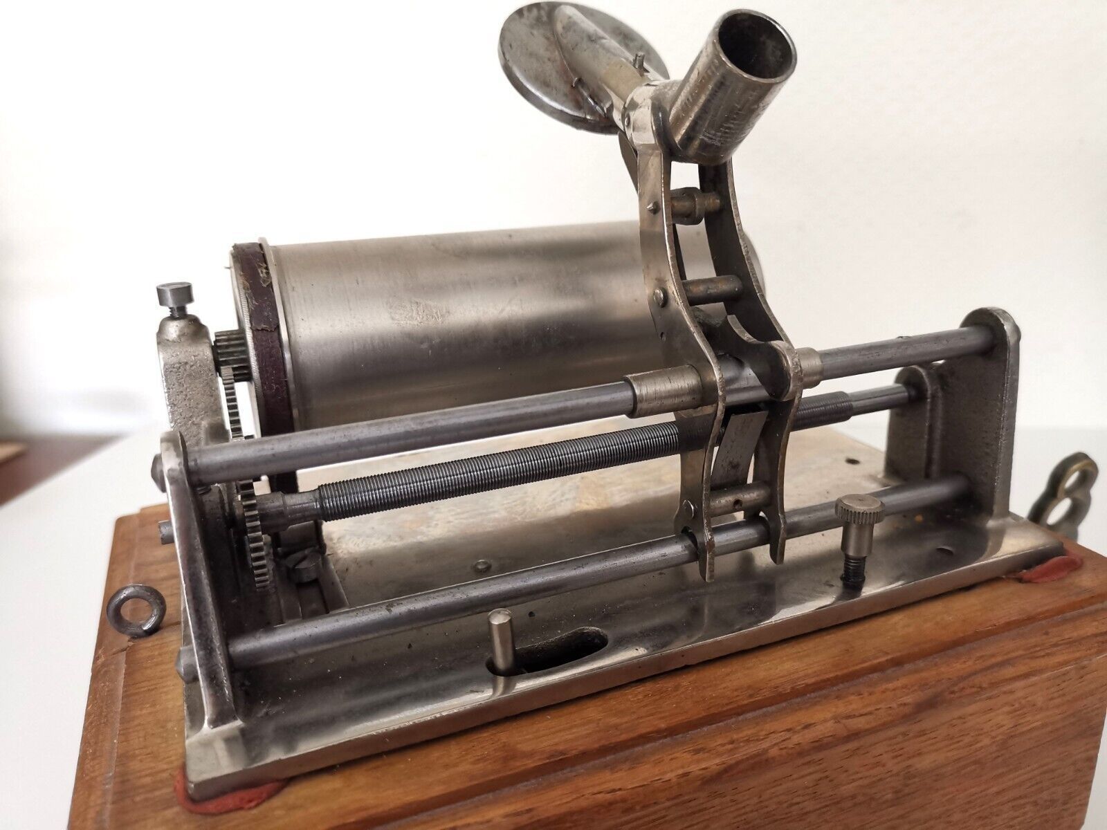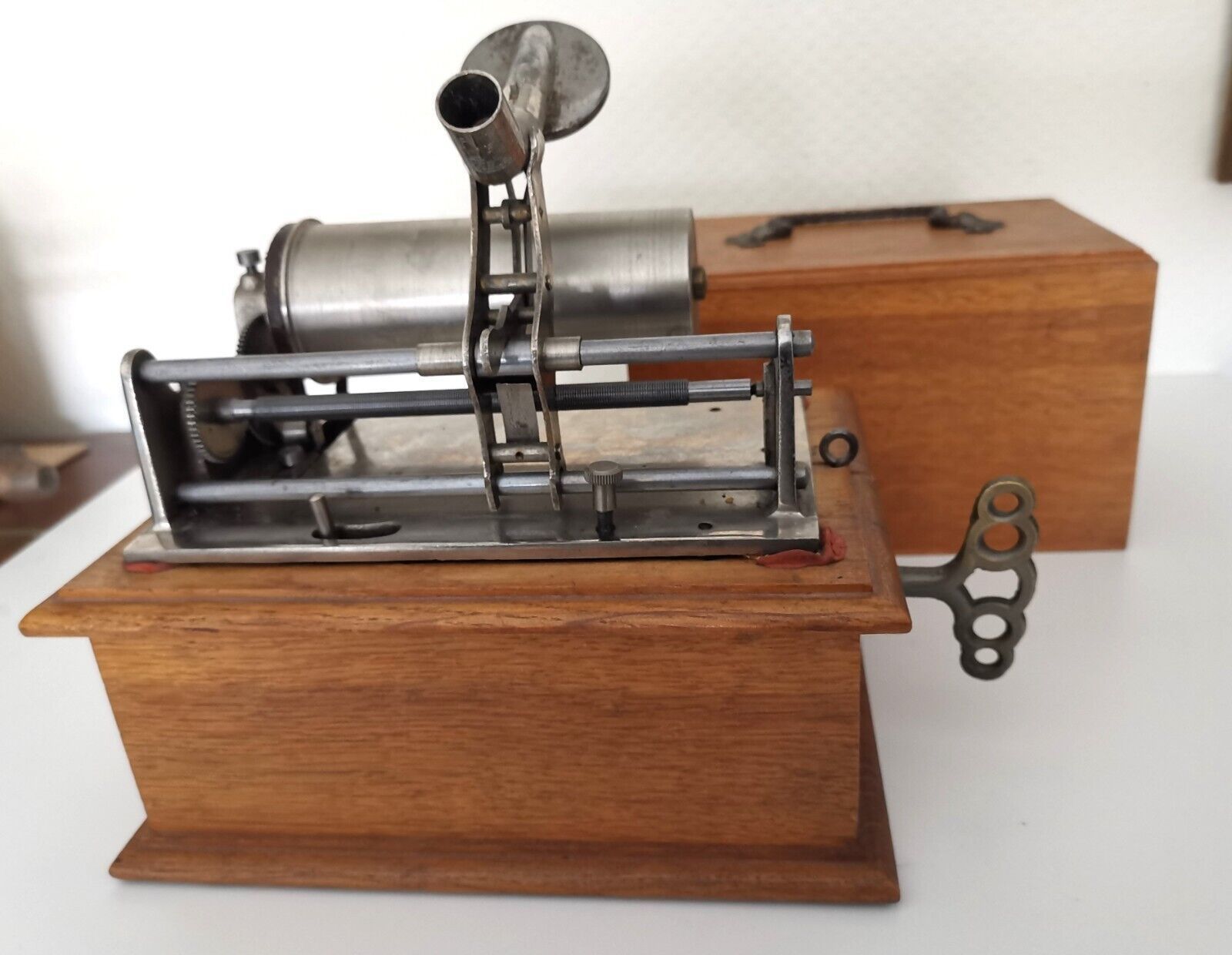 Improved version of the well-known “Ideal” phonograph with enclosed wooden motor housing