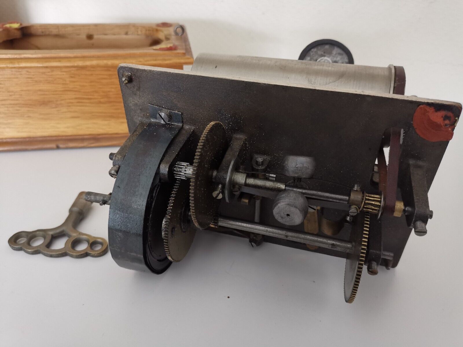 Drive: Spring motor with hand-crank winding