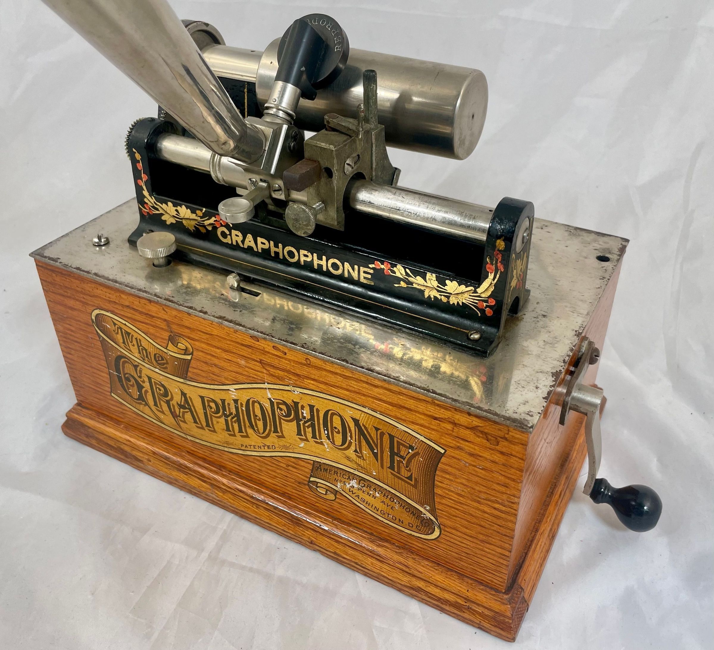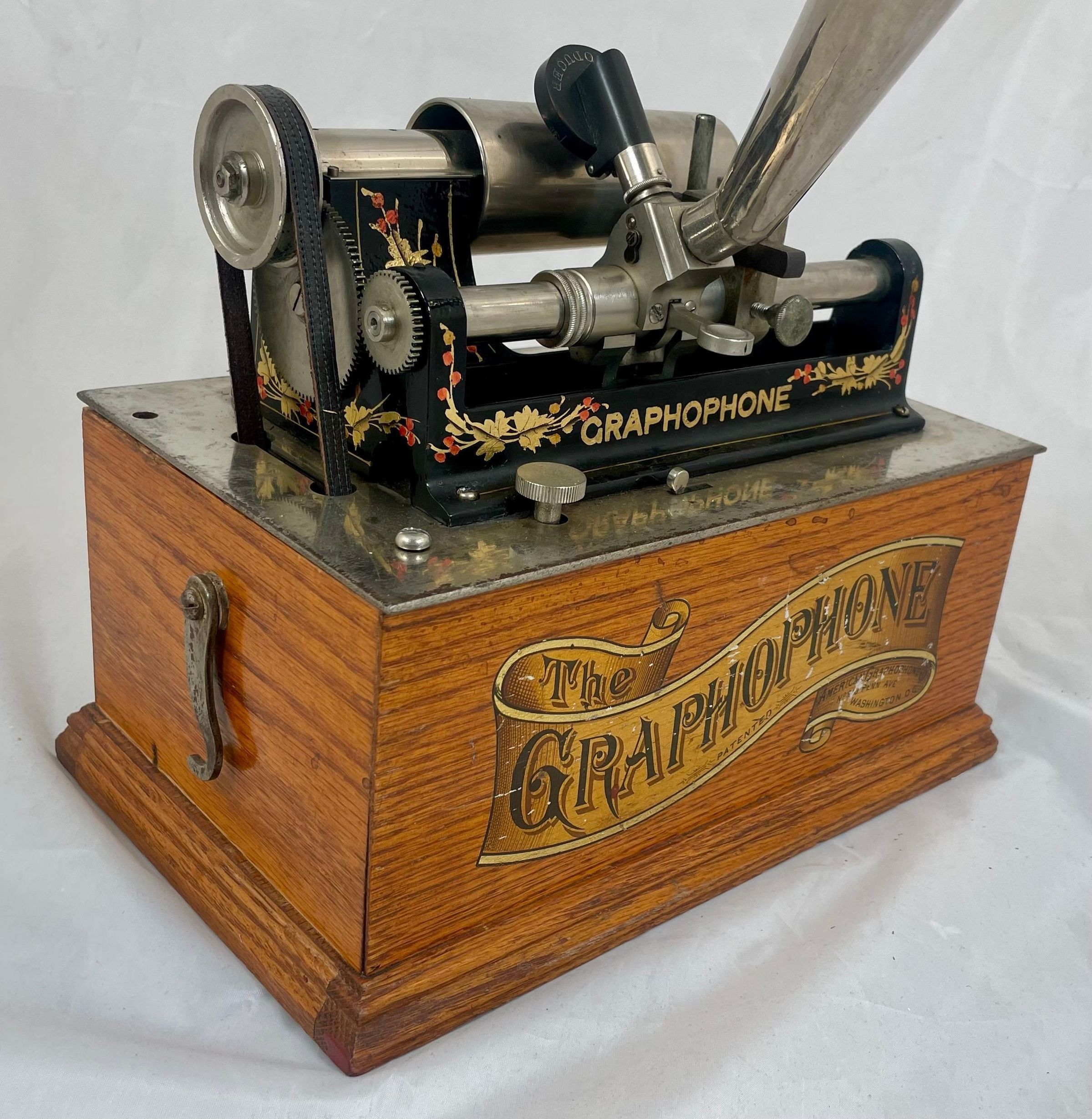 The example shown here bears the traditional “Washington, D.C.” decal. This decal is not a dating feature, but a reference to the origins of Graphophone technology at the Volta Laboratory.