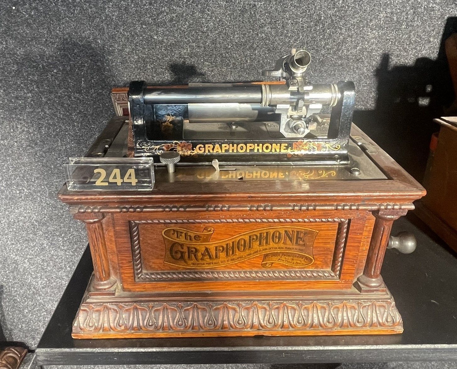 The Graphophone Type AO was introduced in late 1902 or early 1903 and marked a late but important step in the development of Columbia’s cylinder machines. At this time, the American Graphophone Company was already shifting its focus toward disc records, yet it still launched this elaborately designed cylinder model.