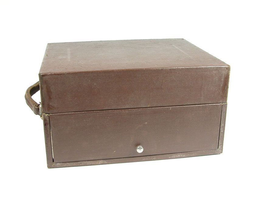 The Pathé Post is a compact, portable tabletop device housed in a fitted case. It combines: