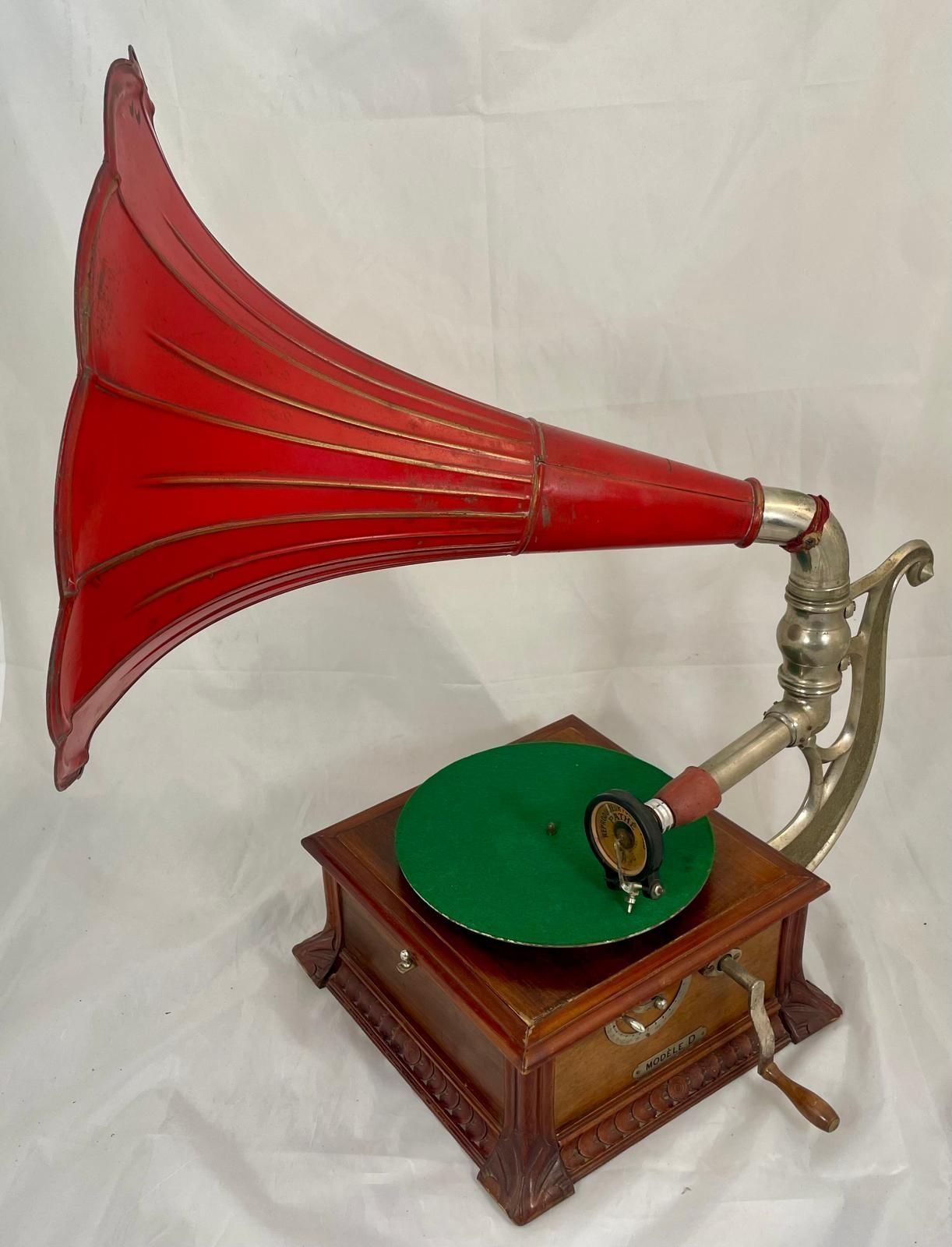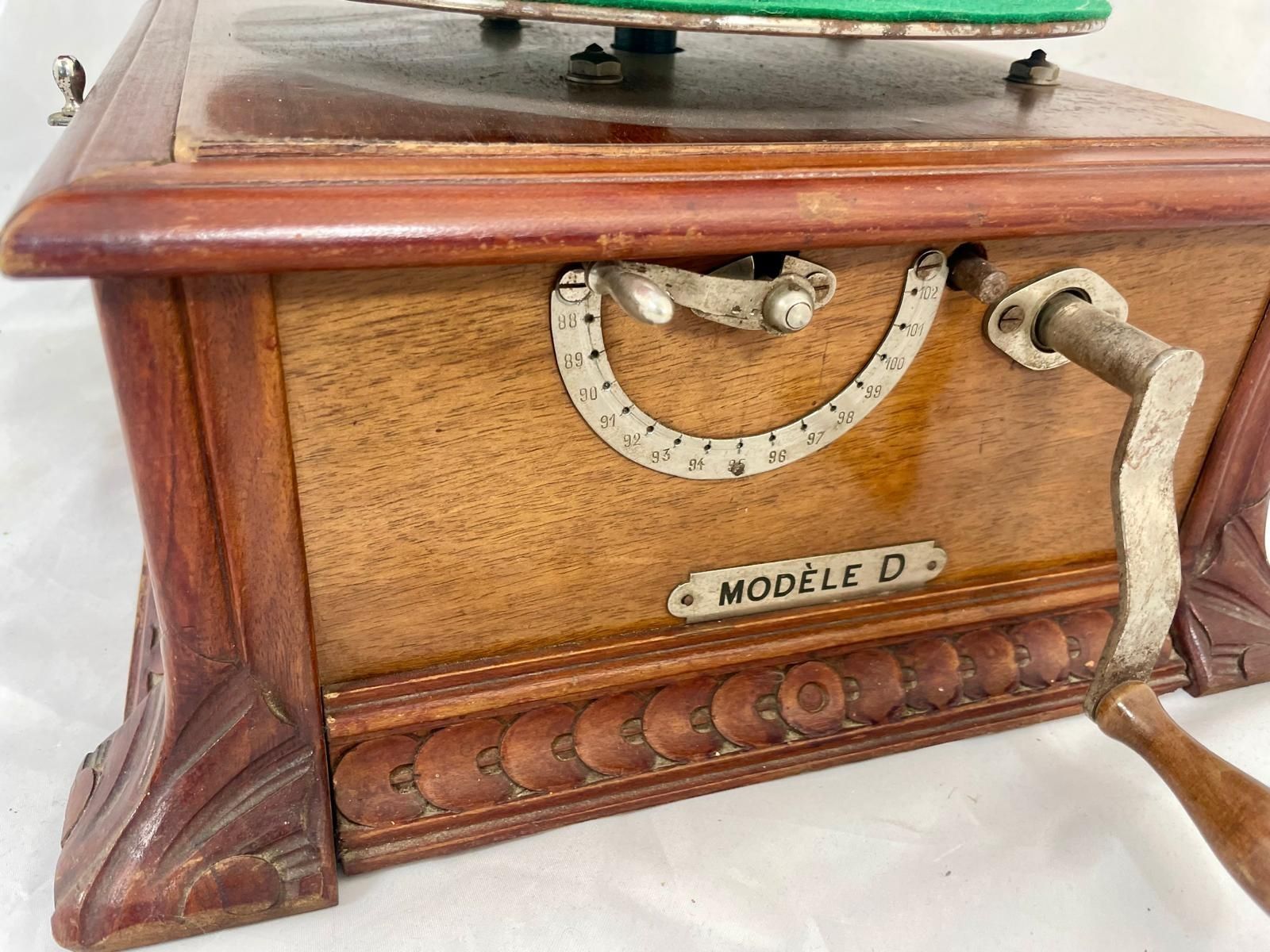 Pathé began producing disc machines in 1906, after achieving major success with its earlier cylinder phonographs. The Modèle D was among the first Pathé disc models designed specifically for domestic use. The use of vertical-cut discs set Pathé apart from other leading manufacturers like Victor and HMV, who relied on lateral-cut formats.