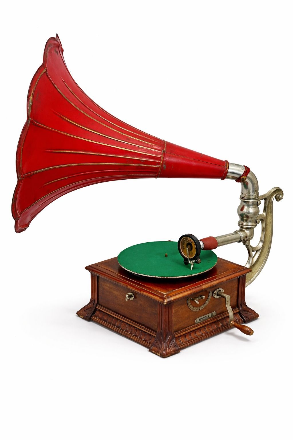 The exhibited machine is not only in remarkably well-preserved condition, but also includes its original accessory kit – a rare surviving example of early 20th-century French phonograph culture. It represents Pathé’s formative leap into the disc format, and reflects the fusion of technology, design, and branding that defined the rise of mass-market sound reproduction.