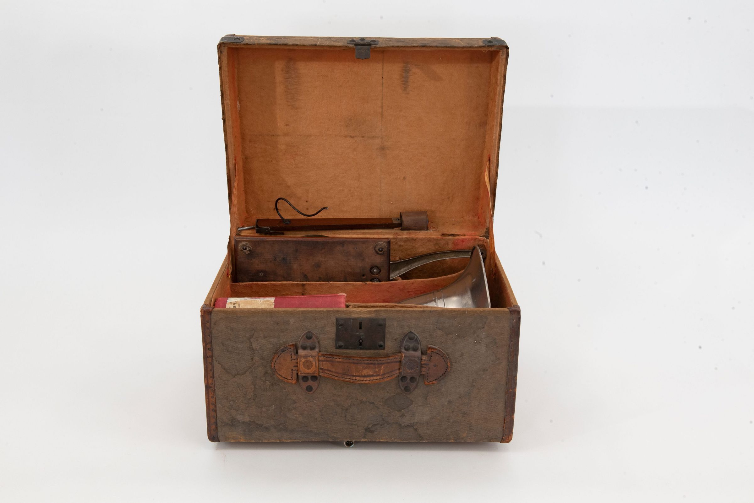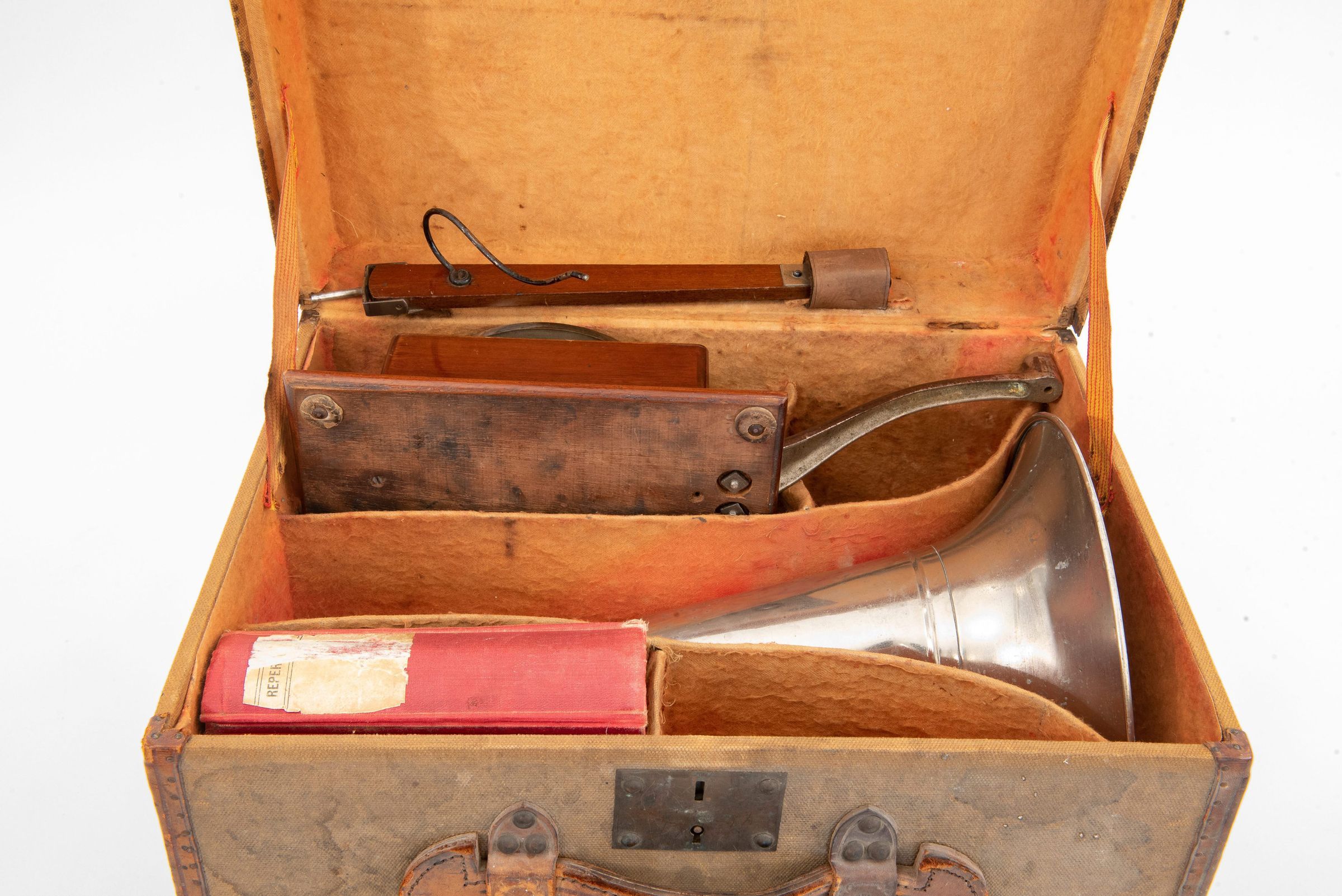 This mahogany portable gramophone is a rare witness to the earliest years of commercial record production. It reflects both the technical state of the art in the late 1890s and Berliner’s ambition to market his invention in a finely crafted, portable form worldwide. The survival of an example with its complete original carrying case makes it an exceptional rarity today.