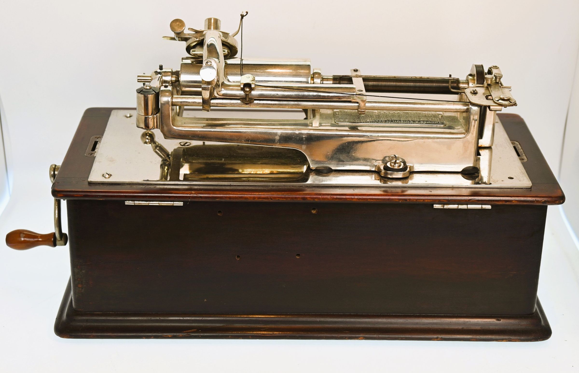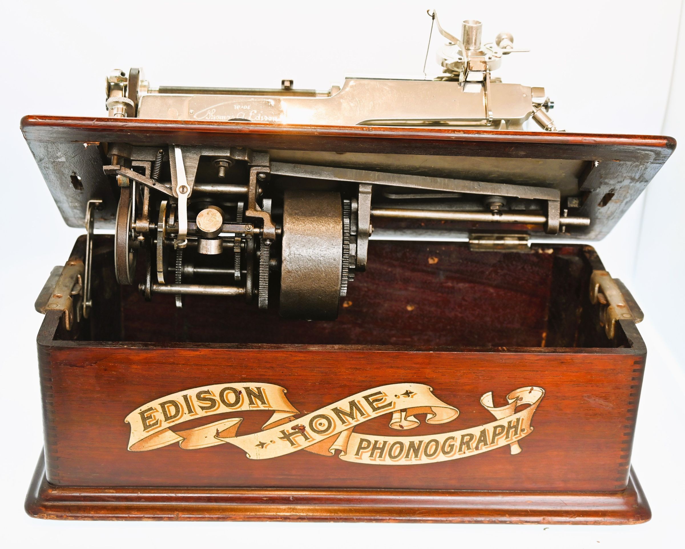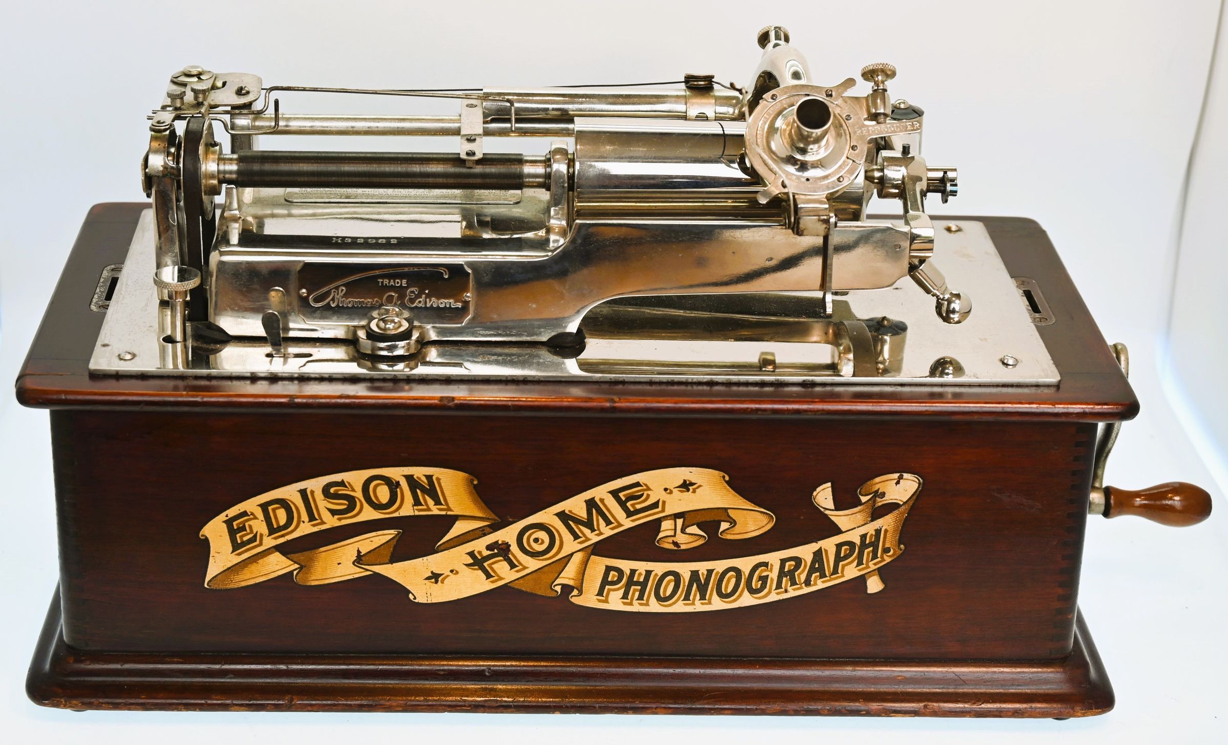 Edison “Home” Phonograph Model A, with Mahogany Cabinet, Nickel-Plated Upper Works, and String J RepeaterEntry/Object ID