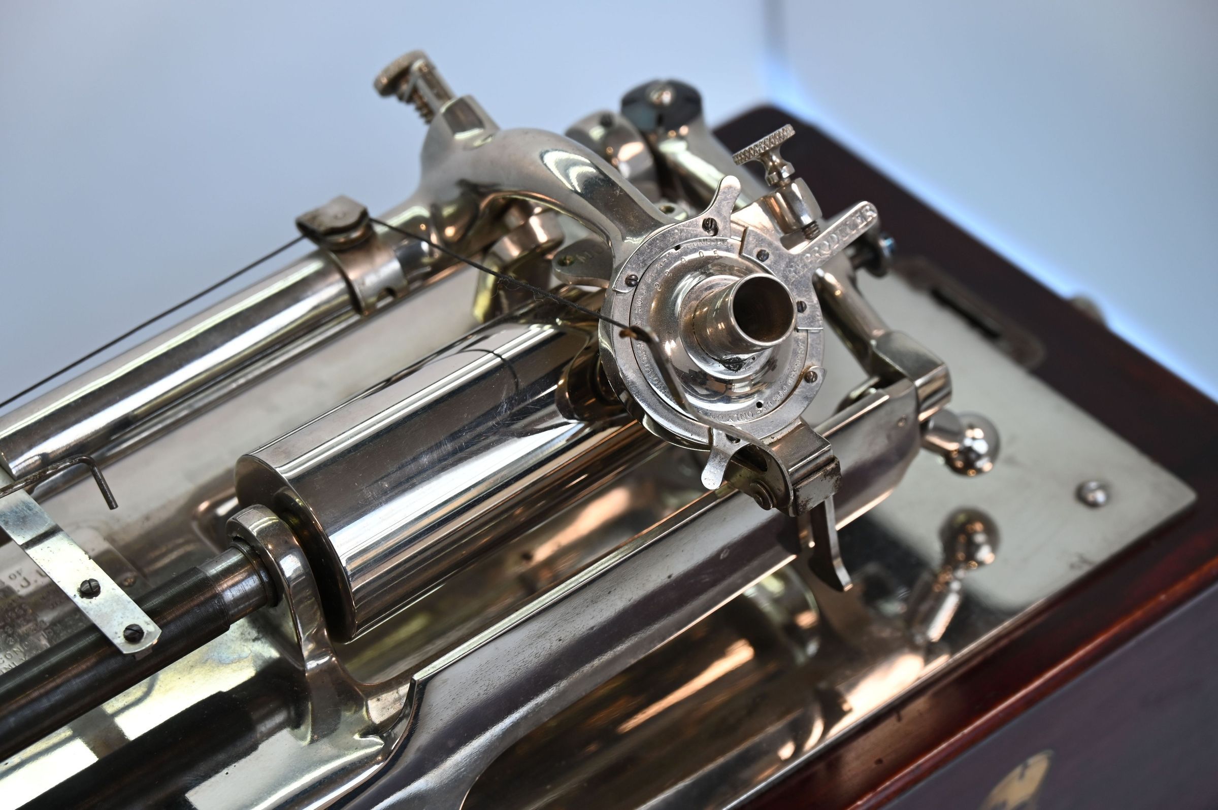 The so-called “J Repeater” was specifically designed for Edison models of the “Home” and “Triumph” types. It enabled the automatic return of the carriage to the starting point of the cylinder.