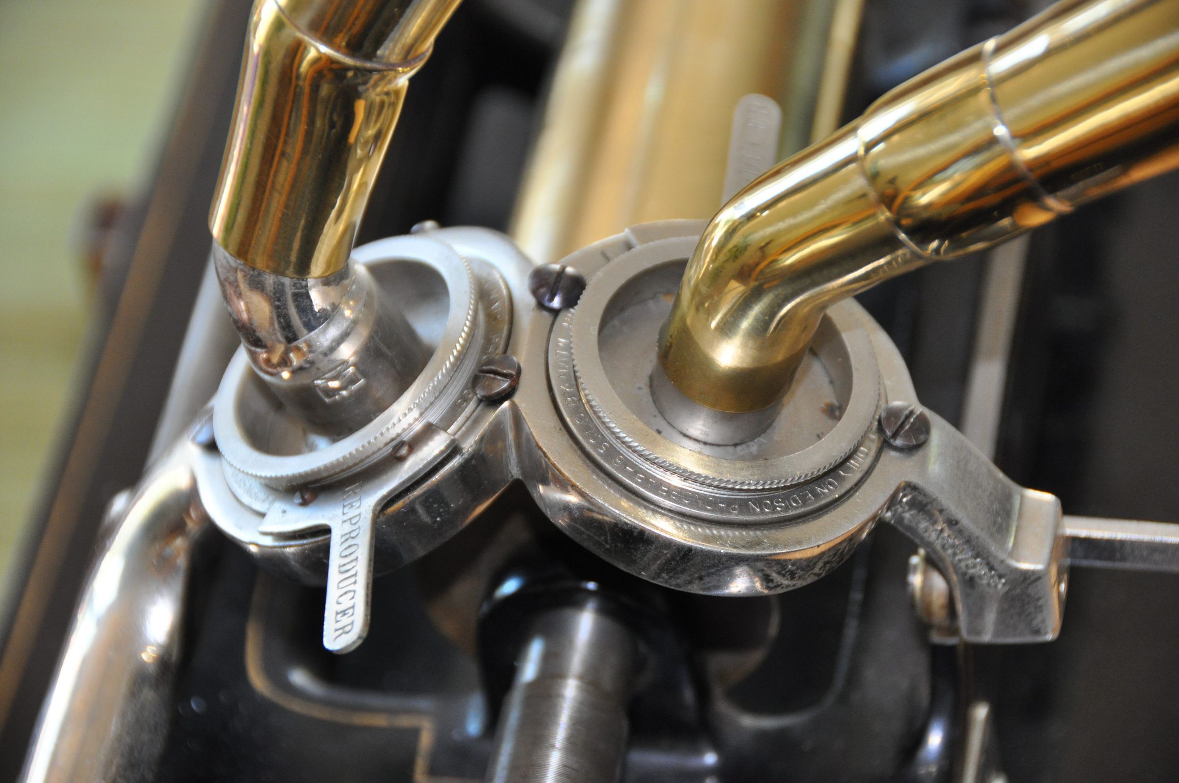 With the introduction of the louder black wax cylinders (around 1902), demand for the Polyphone dropped rapidly. Production soon ceased, which is why today only a few original units survive – especially in this full configuration with two original brass horns.