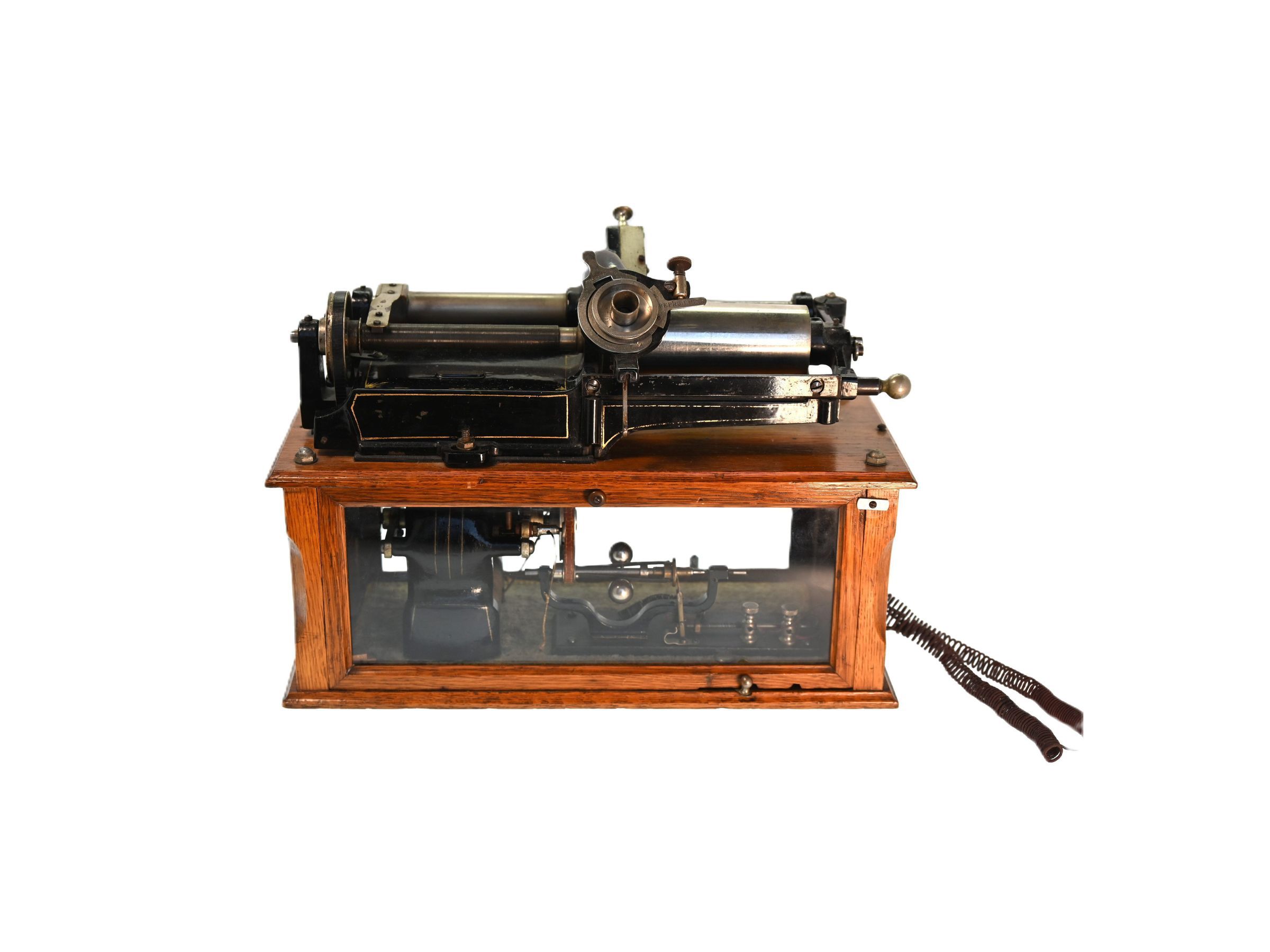 This extraordinary machine is one of only two known phonographs that were developed as experimental successors to the Edison Class M (introduced in 1888). While the original Class M was very heavy and unsuitable for transport, this variant was apparently an attempt to create a lighter, more compact version.