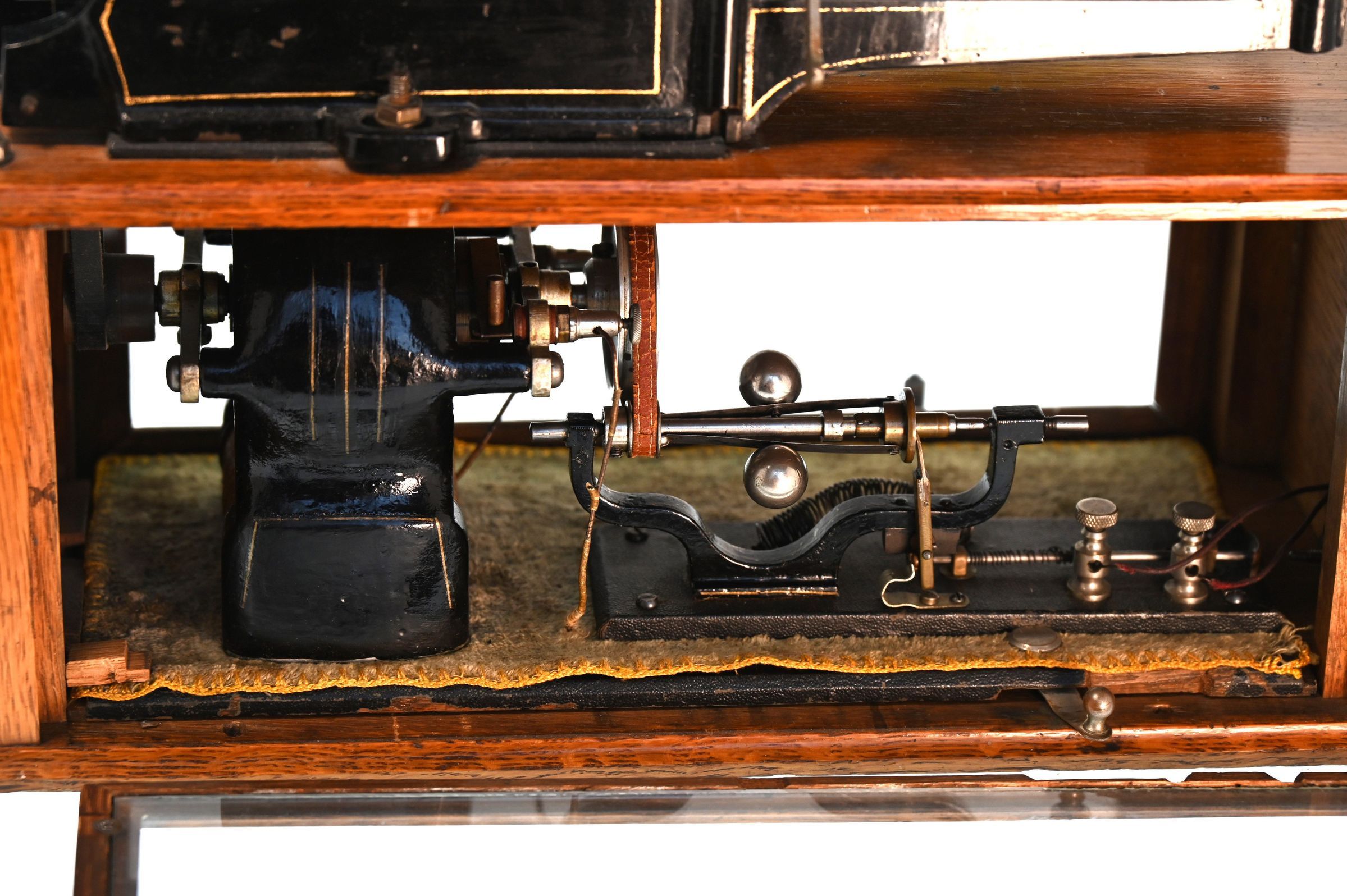 The example shown here (161) is the only surviving machine with the original cast-iron bedplate and therefore a key artifact for understanding Edison’s early electric phonographs.