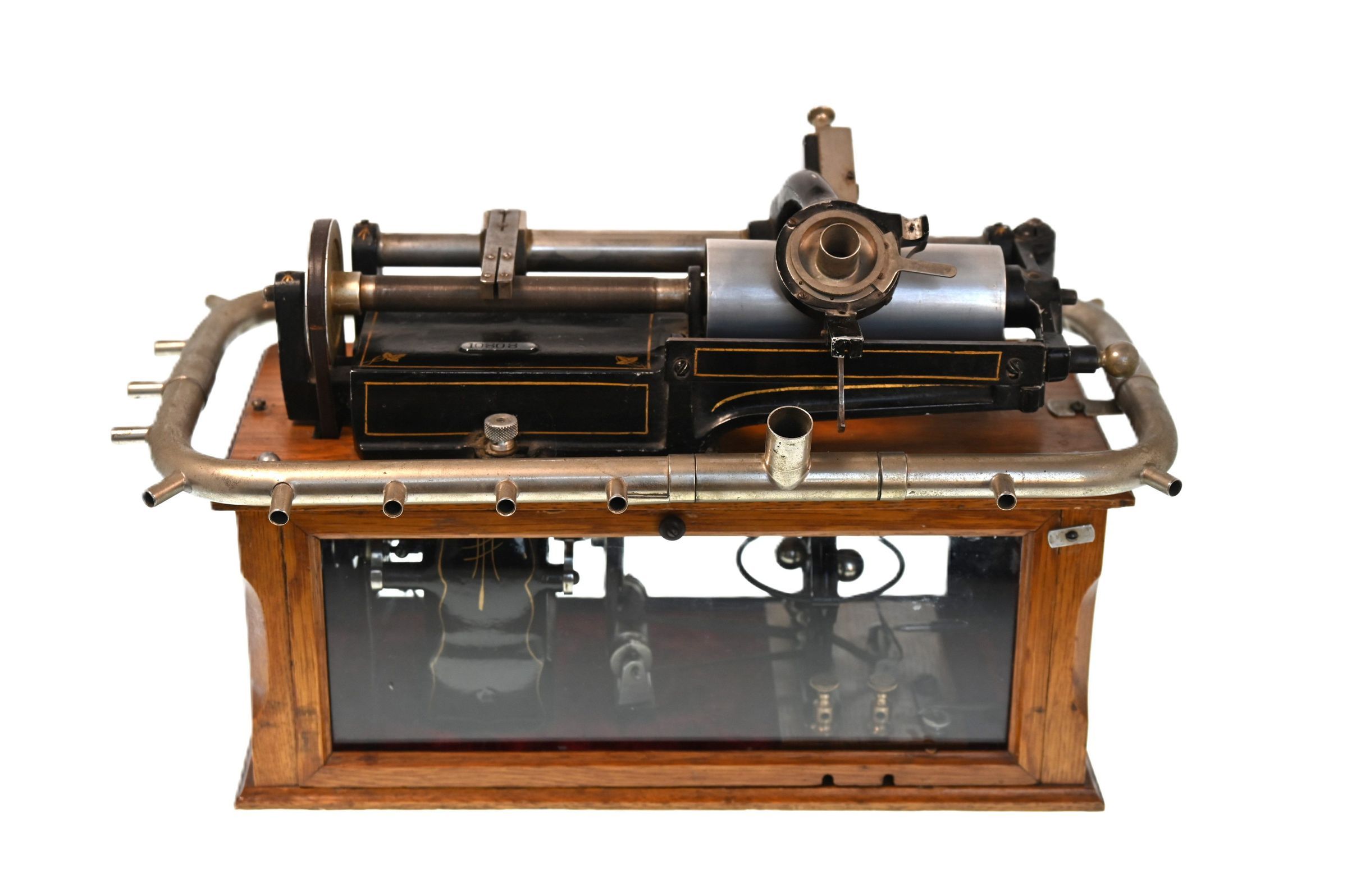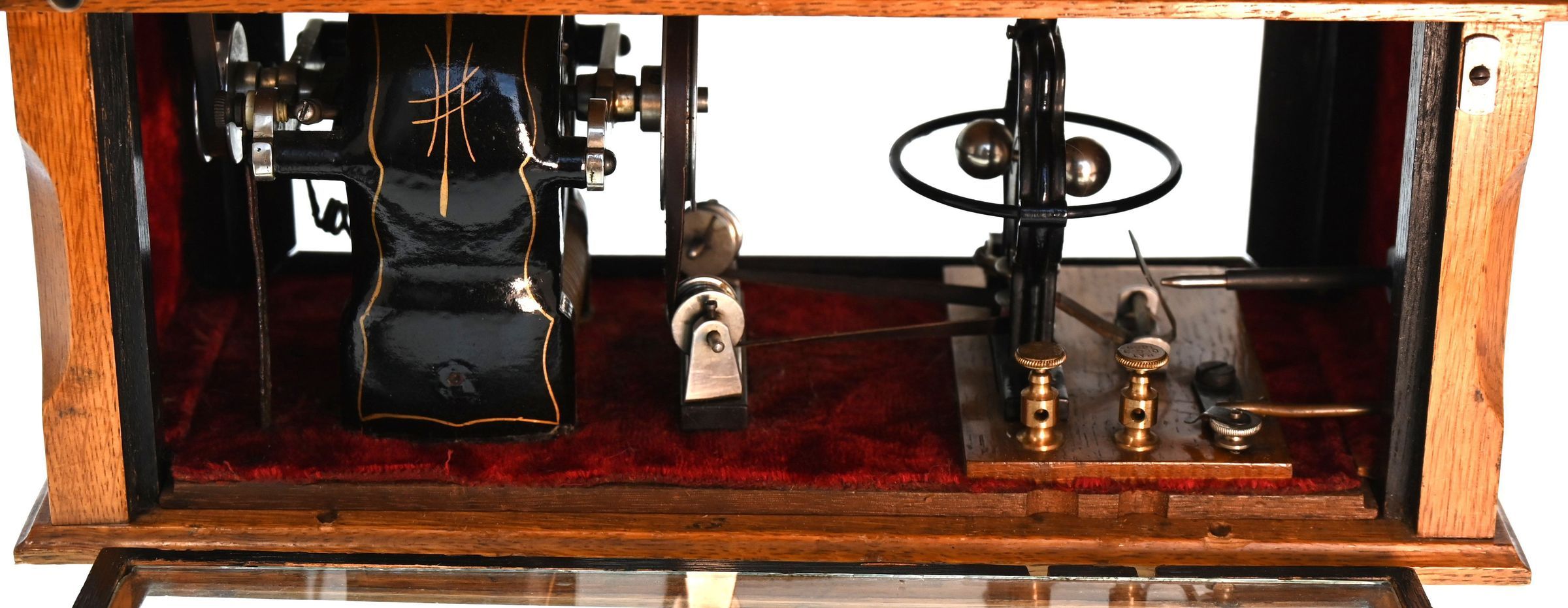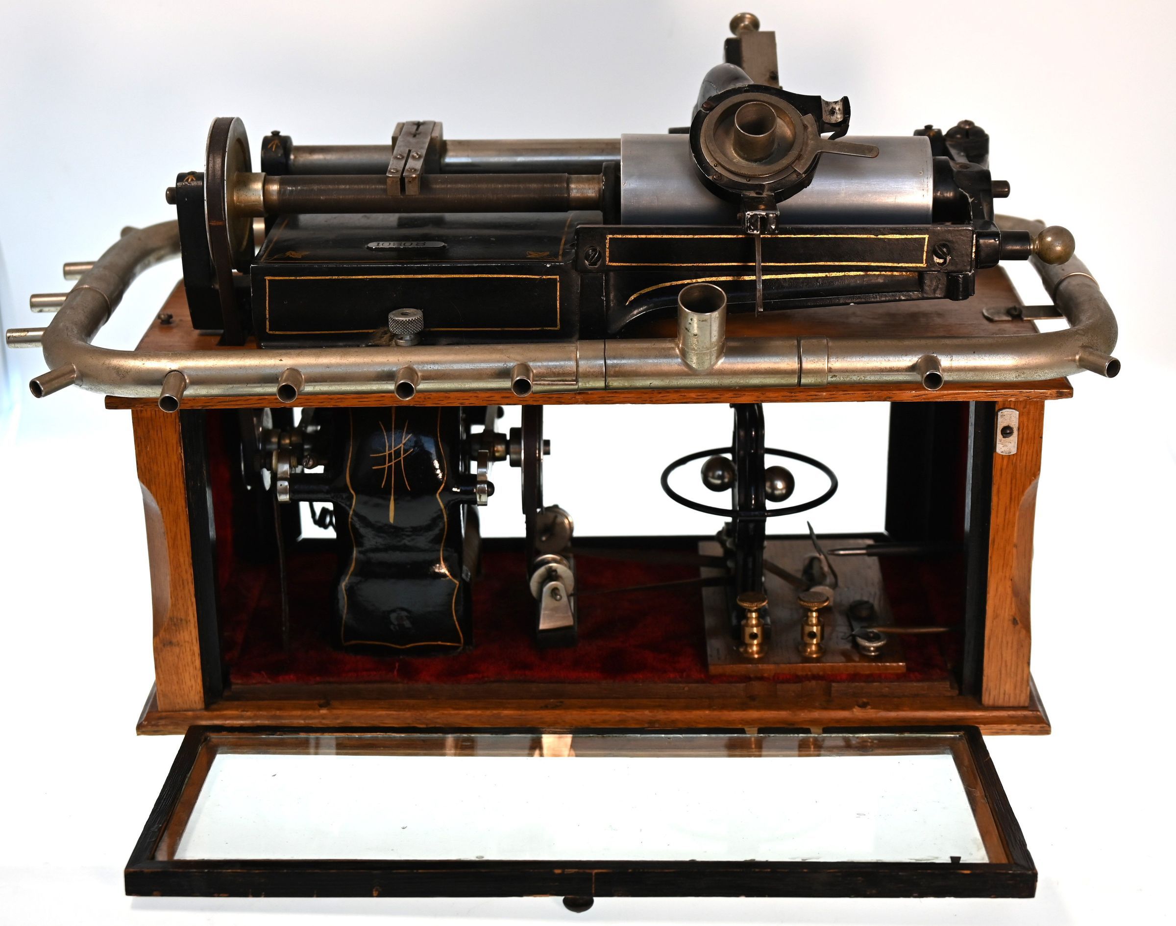 The exhibited machine (Inventory No. 162) with its aluminum upper frame is the only known example of its kind and stands as a key prototype in the evolution of Edison’s phonographs.
