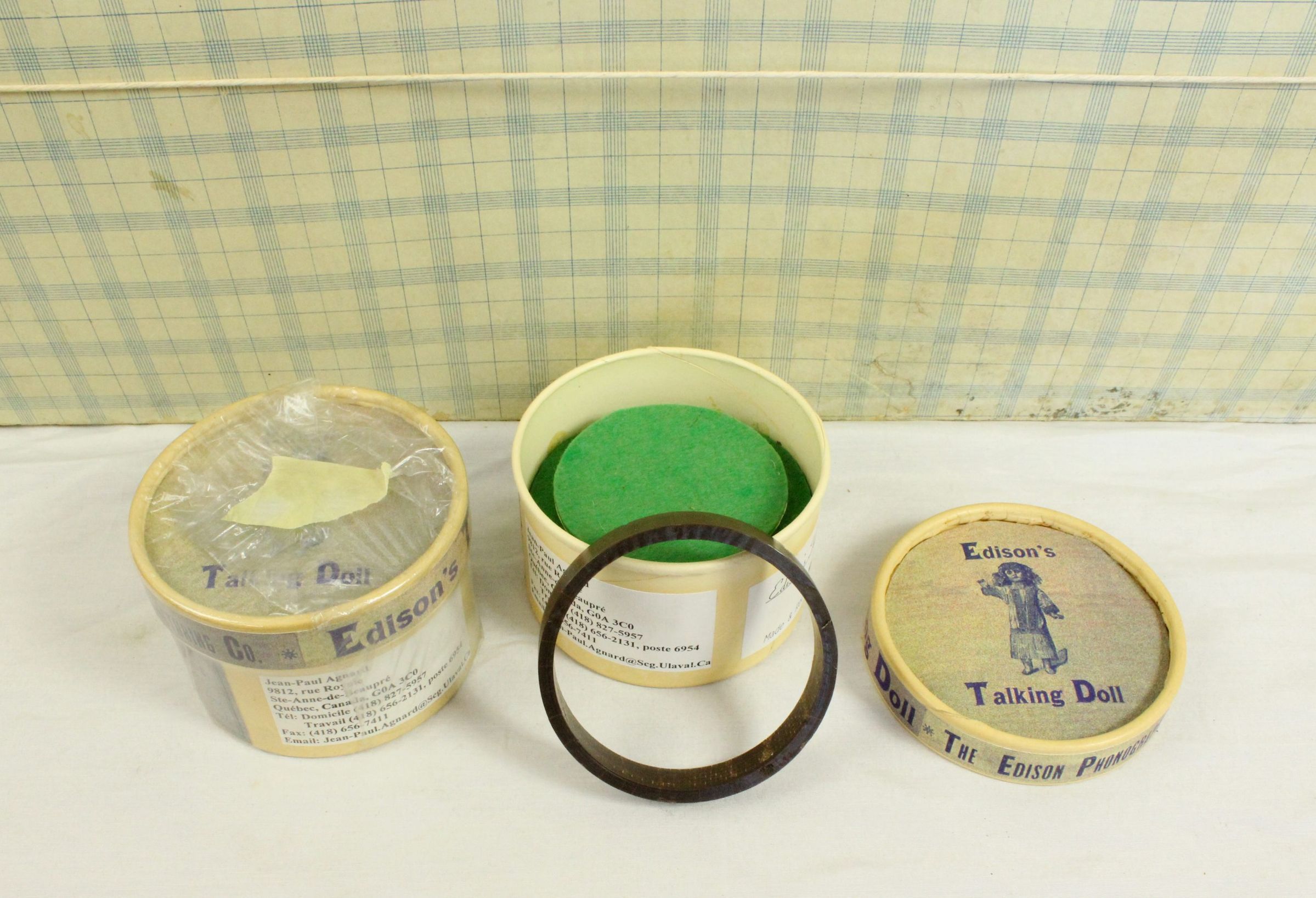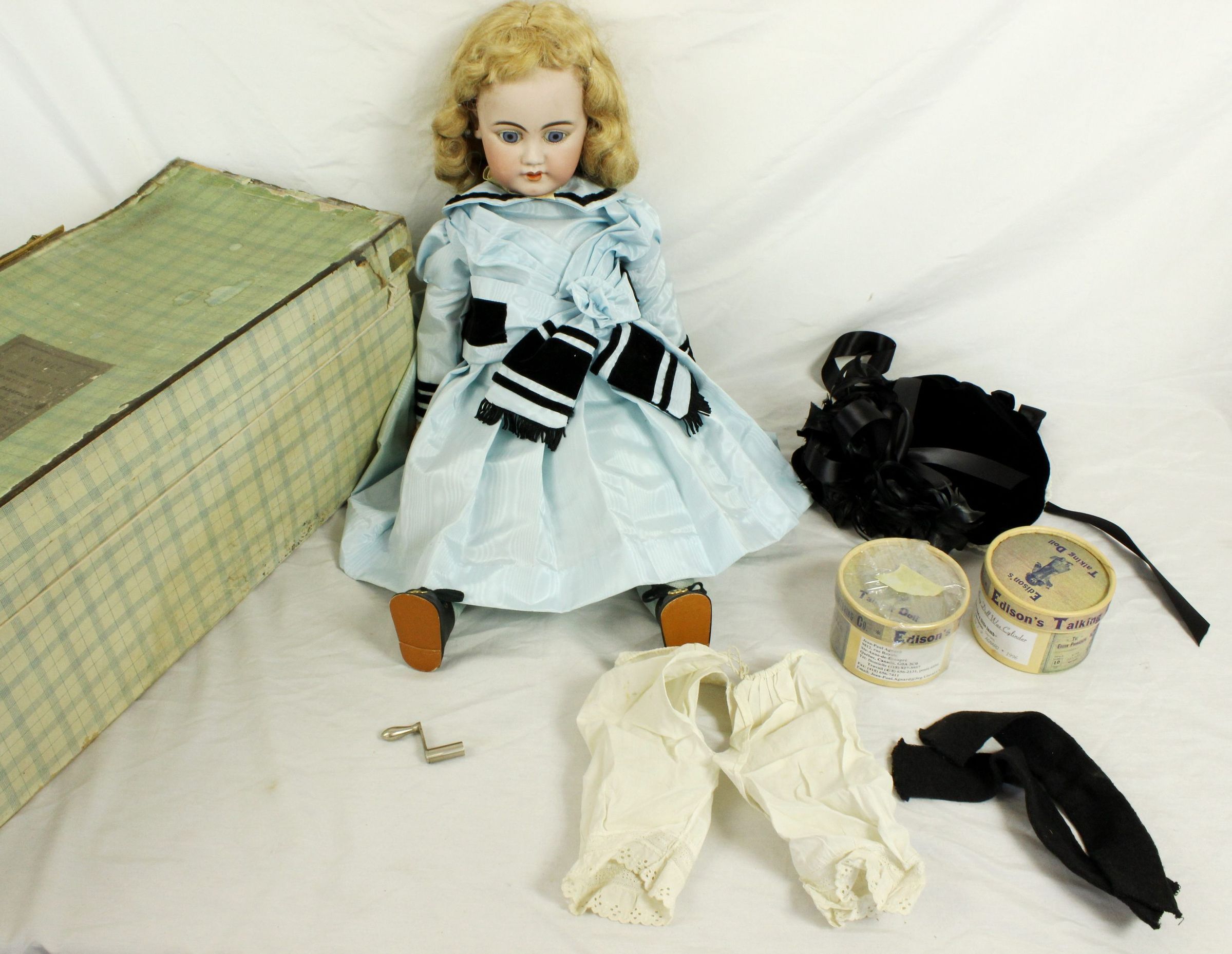 Two original Edison Talking Dolls, including one in its original 1888 packaging. Only a handful of complete examples with functioning mechanisms have survived – a remarkable early fusion of sound recording and children’s toys.