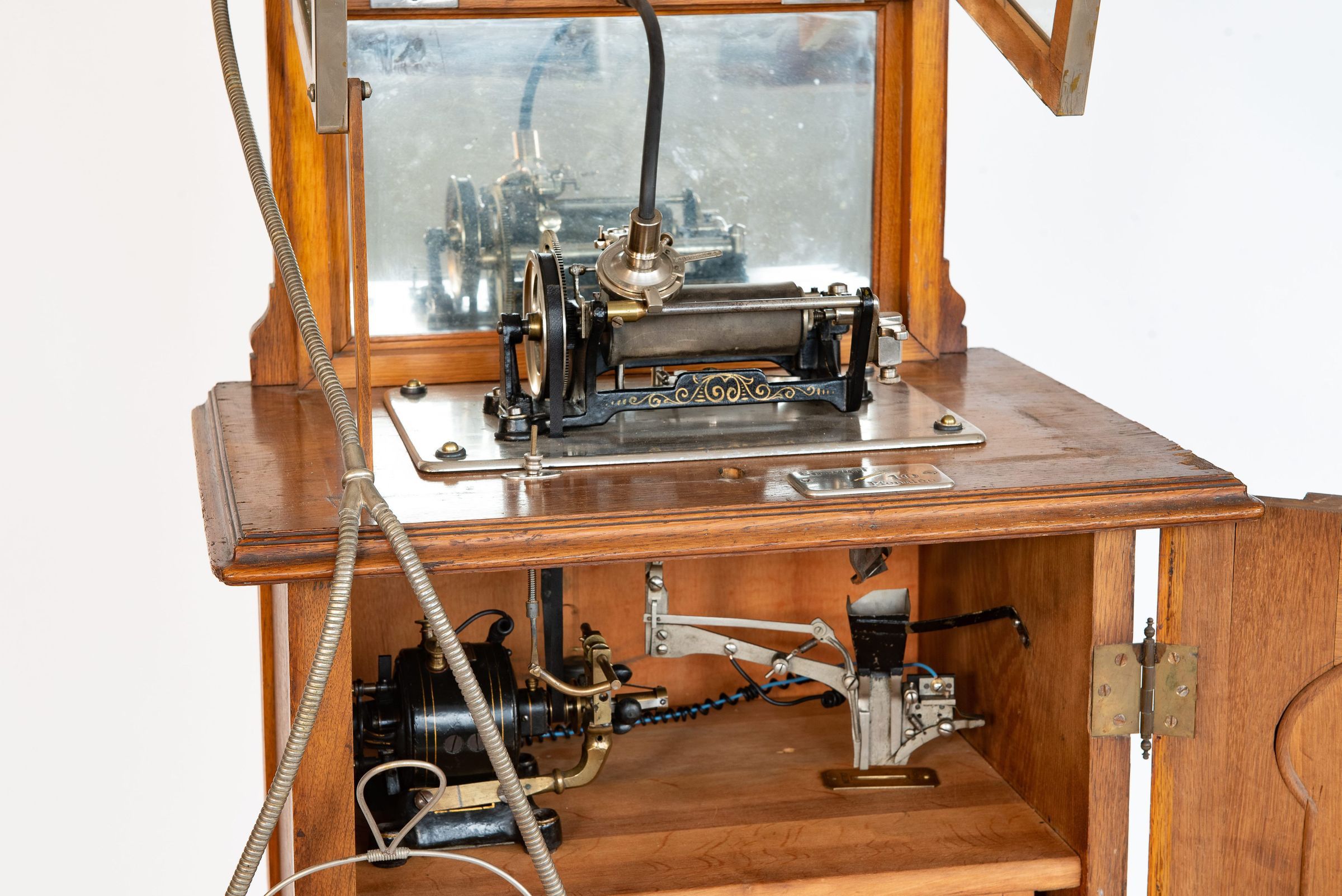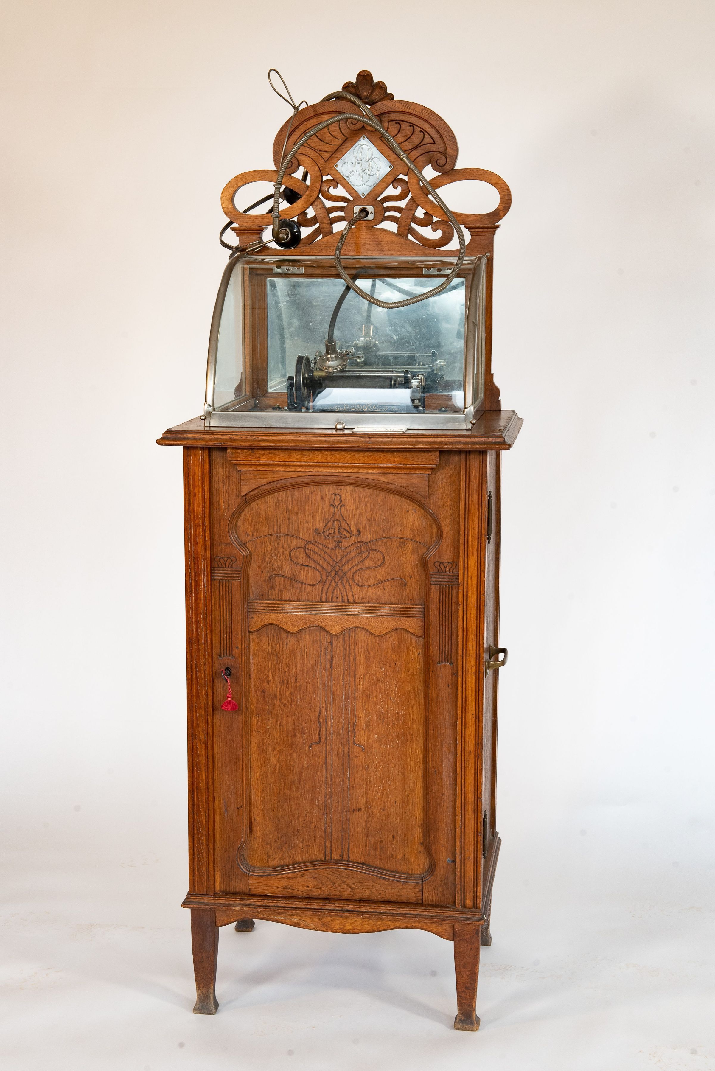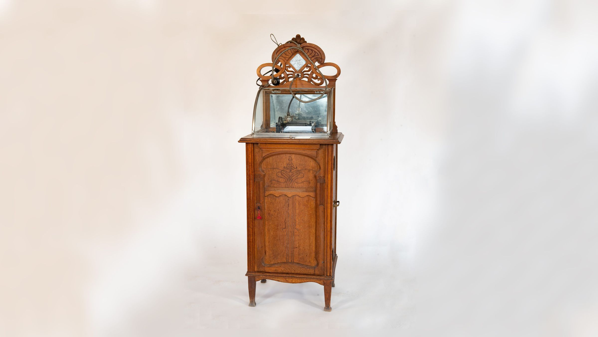 The “Meteor” is an exceptionally rare example of an early German coin-operated phonograph. Manufactured around 1900 by the company Ernst Eisemann & Co., this device reflects the transition from experimental phonograph designs to reliable commercial applications. Originally founded as a low-voltage electrical installation company in Stuttgart during the 1890s, Ernst Eisemann began producing phonographs around 1893. In 1896, he successfully defended a patent lawsuit against Edison—a landmark legal victory that cleared the way for his independent phonograph production.