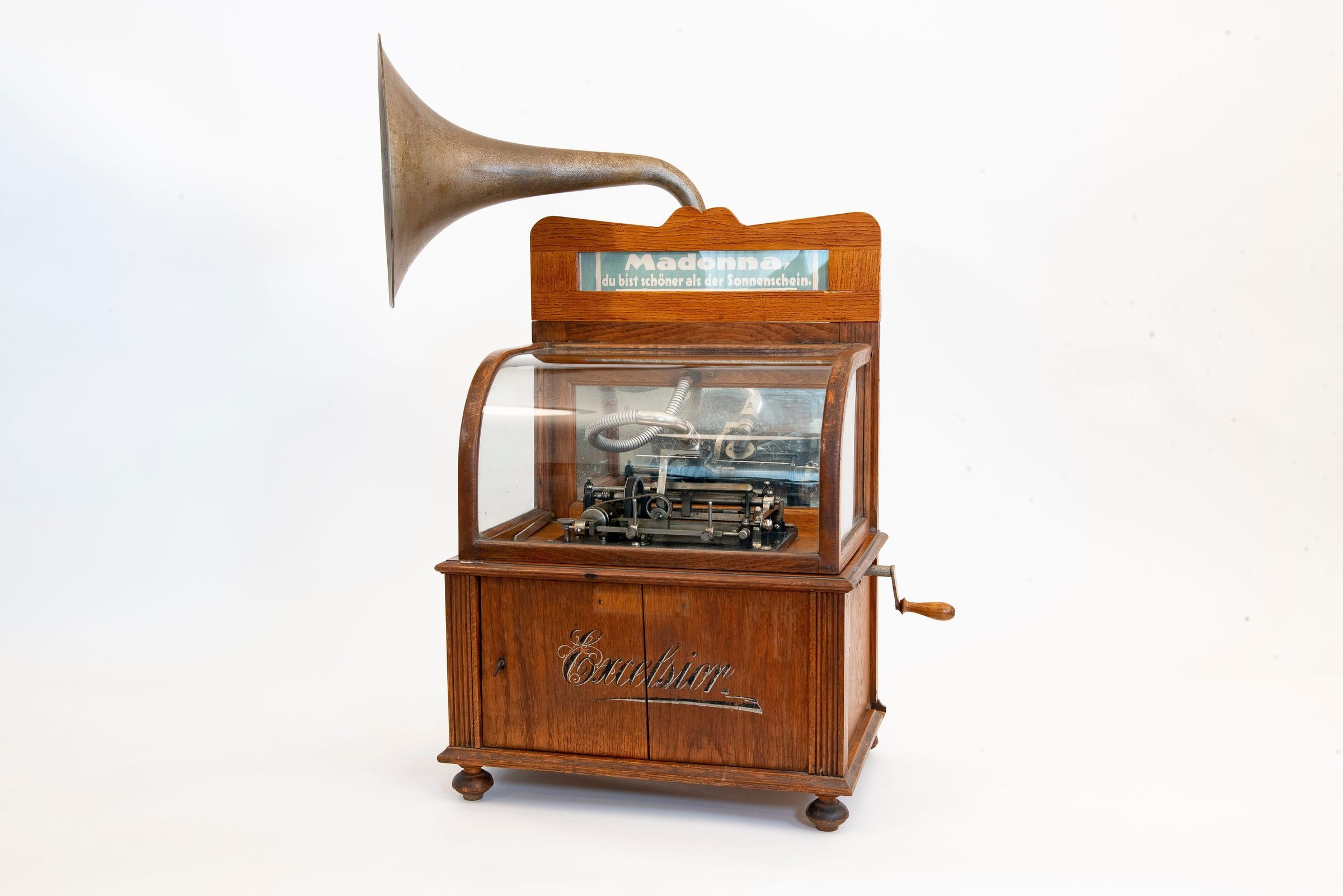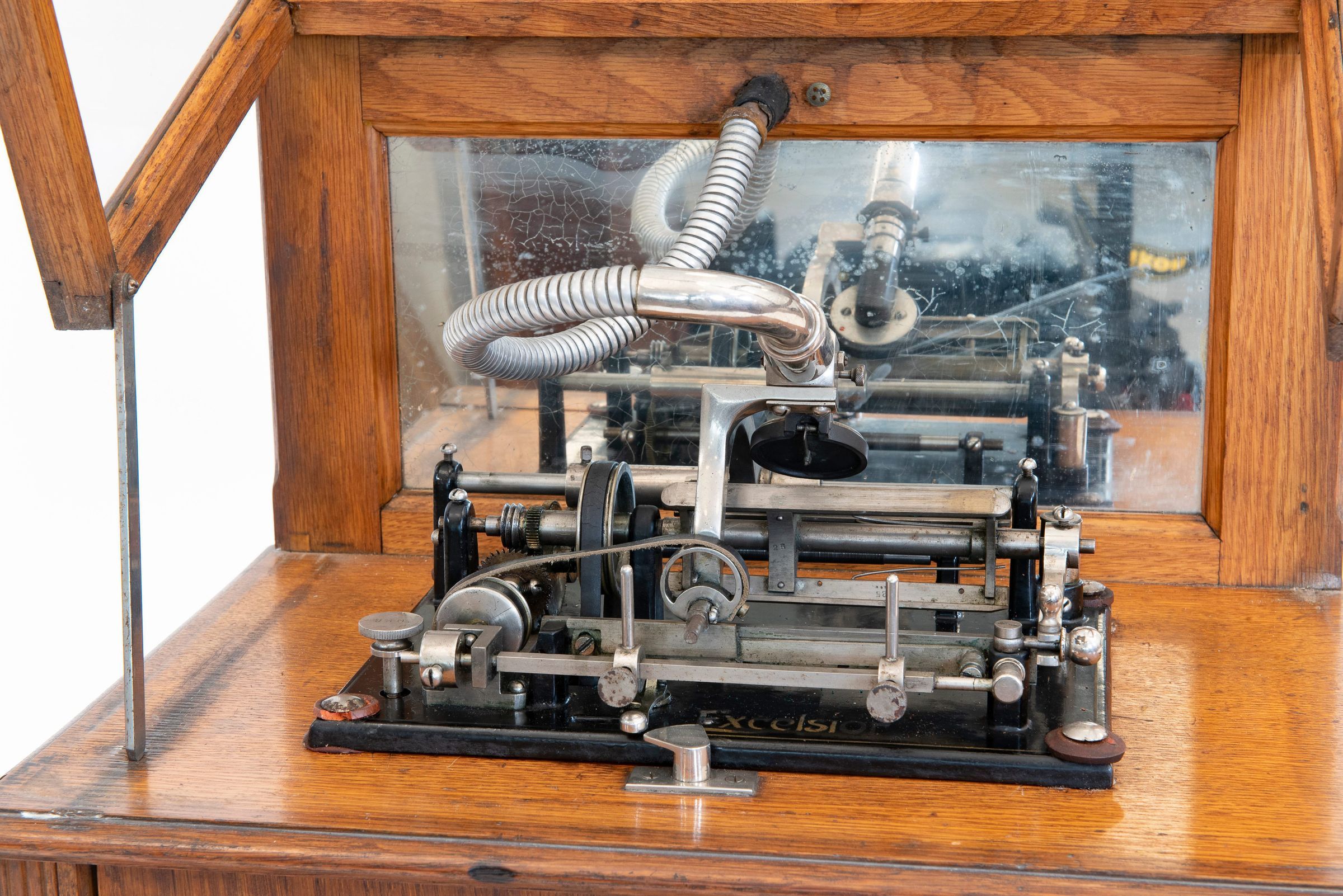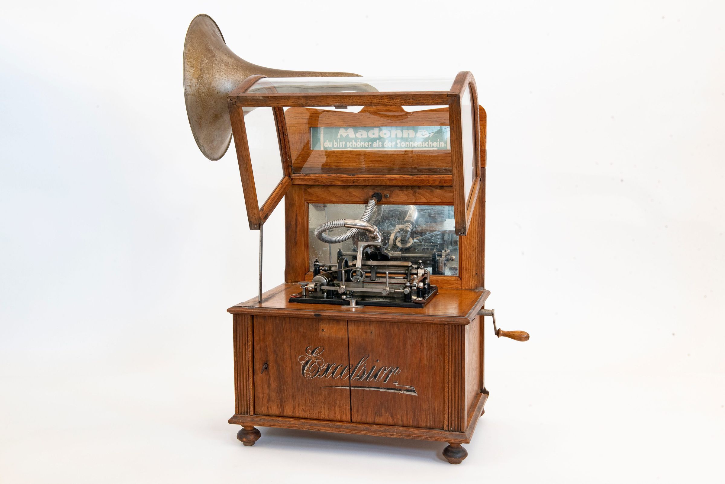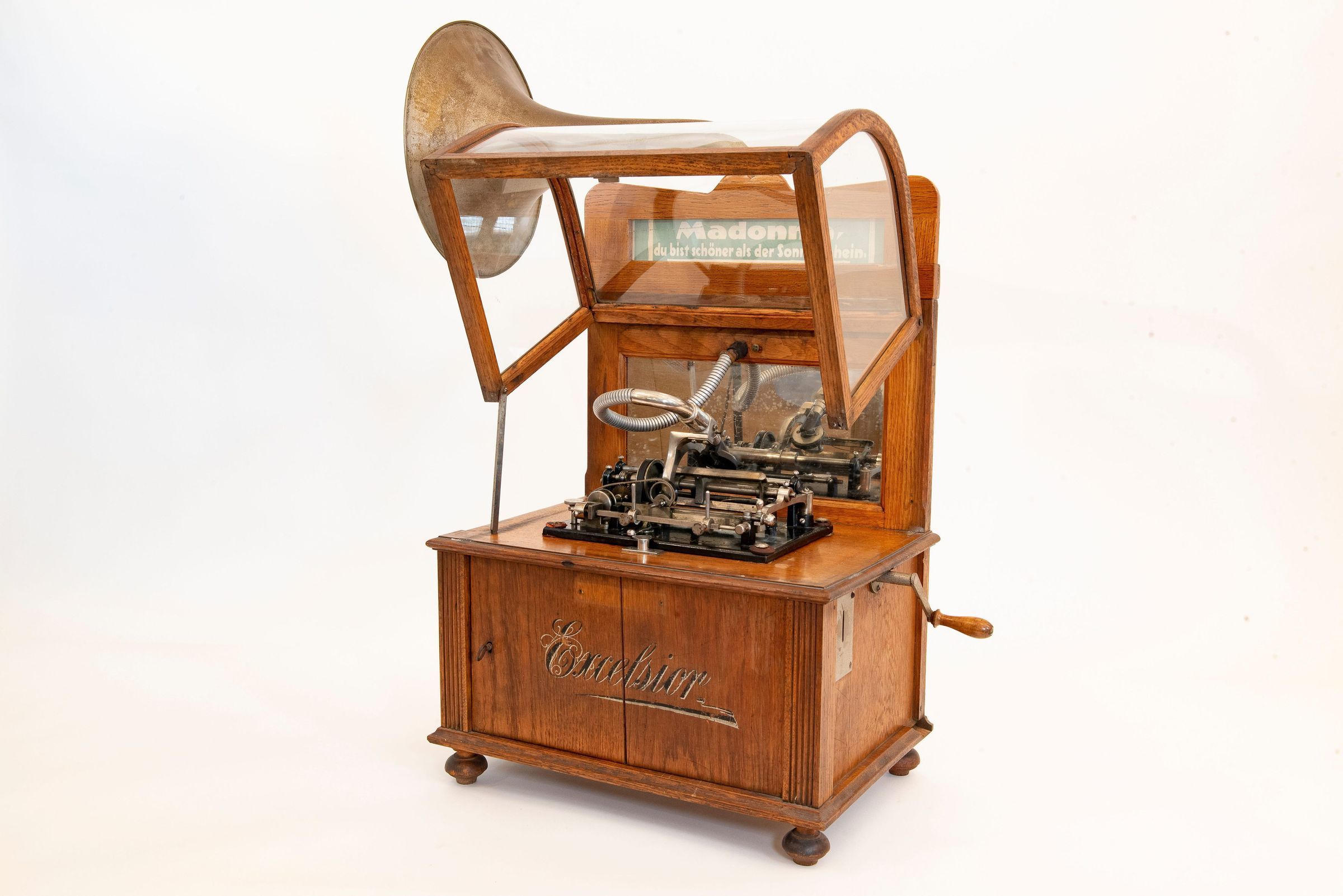 This particularly compact coin-operated phonograph is one of the very few surviving examples of German coin-op phonographs from before the First World War. The “Liliput” model was manufactured by the Excelsior Company in Cologne, which specialized in high-quality cylinder phonographs and music automata.