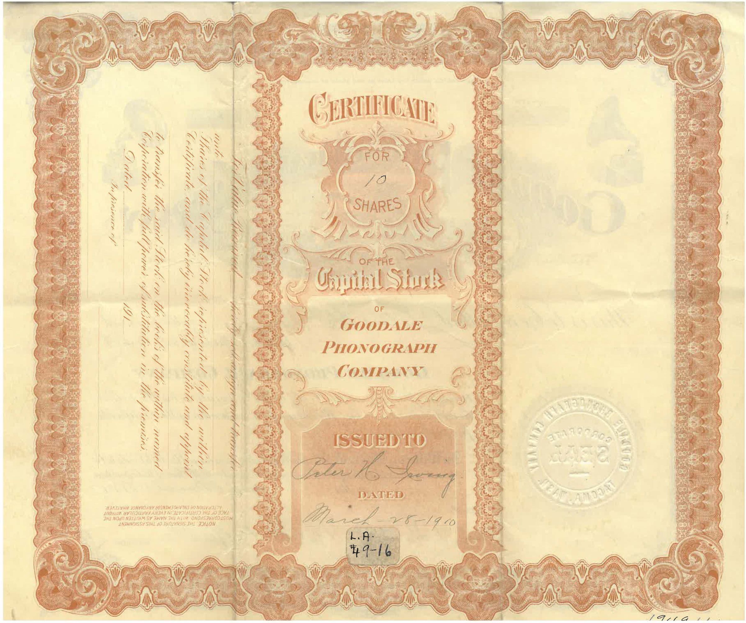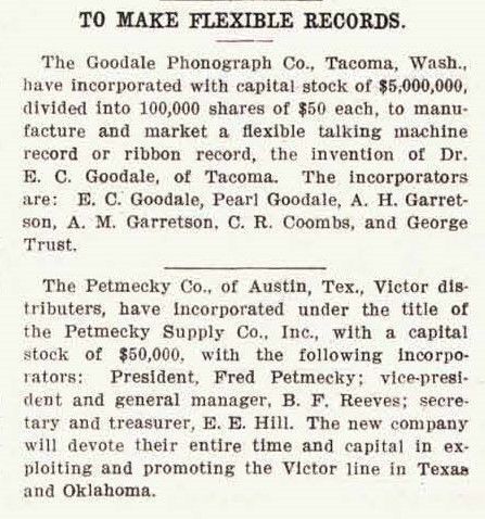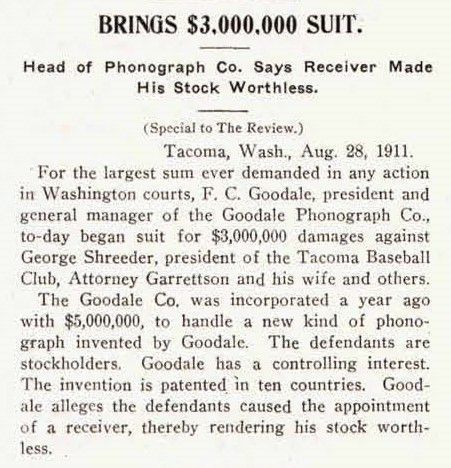 In 1910, he founded the Goodale Phonograph Company with an extraordinary starting capital of five million U.S. dollars—a huge sum for the time—aiming for full‑scale production and worldwide distribution.