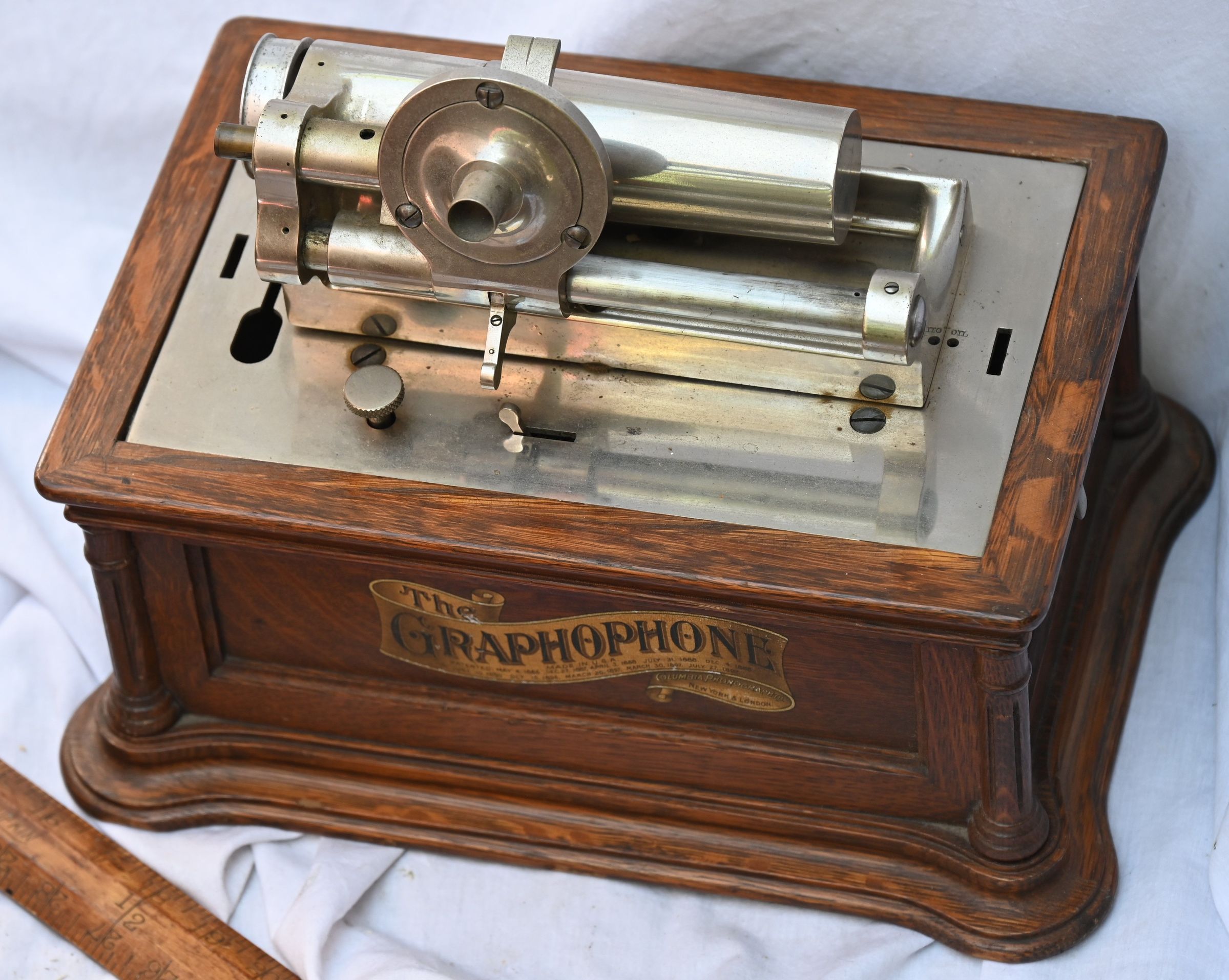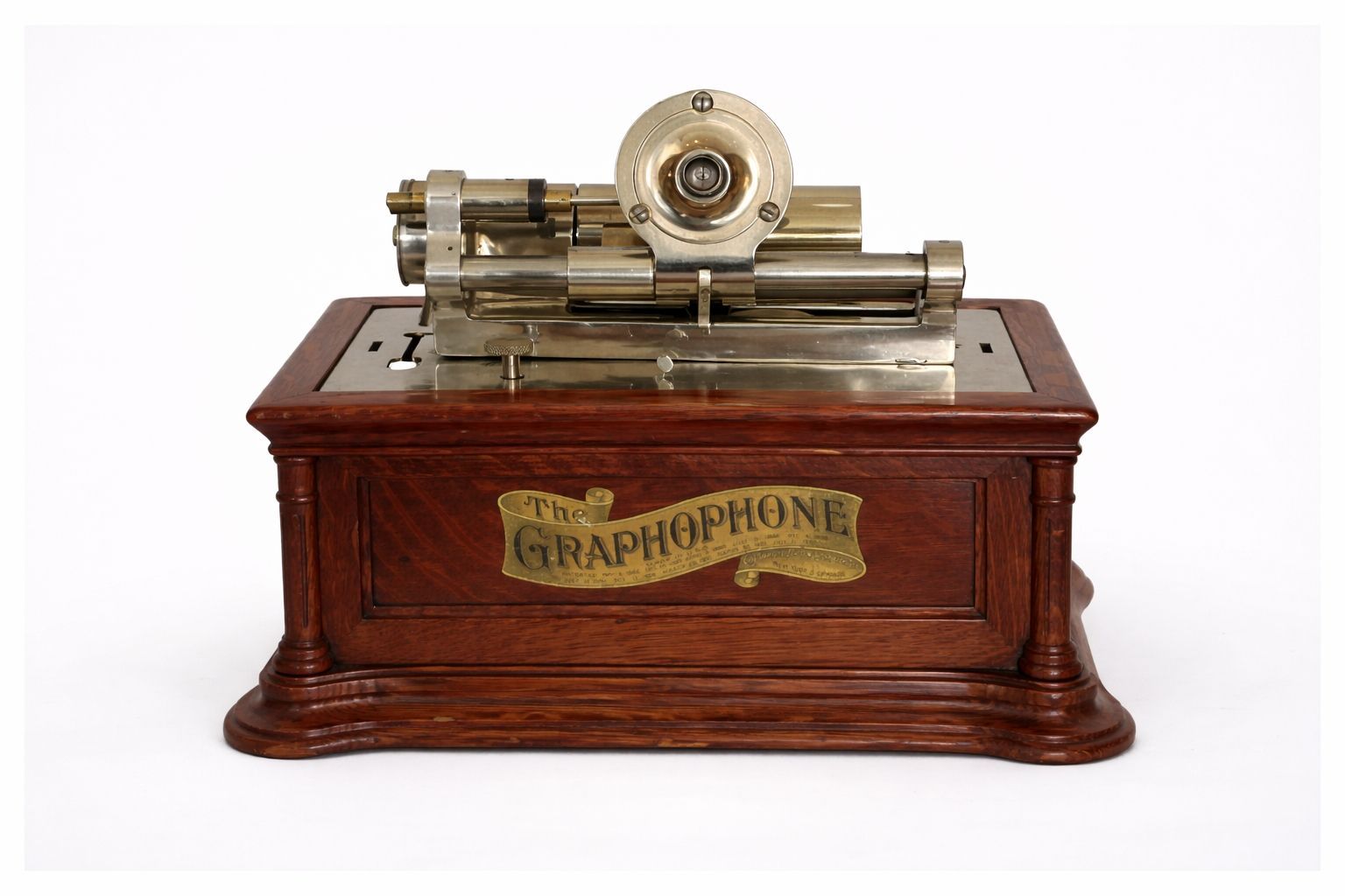 This device was developed around 1908 in the laboratories of the American Graphophone Company as a prototype. It was likely intended as a more affordable and compact alternative to the well-known but heavy and expensive Graphophone "BC."