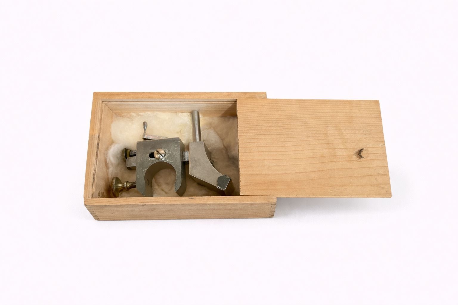 This accessory was specifically developed for the Graphophone models Type N and Bijou, and was advertised in catalogs around 1900 as the “Simplex Shaving Knife.” It is a technical aid designed to make wax cylinders reusable by carefully shaving off the top layer to allow for a new recording.