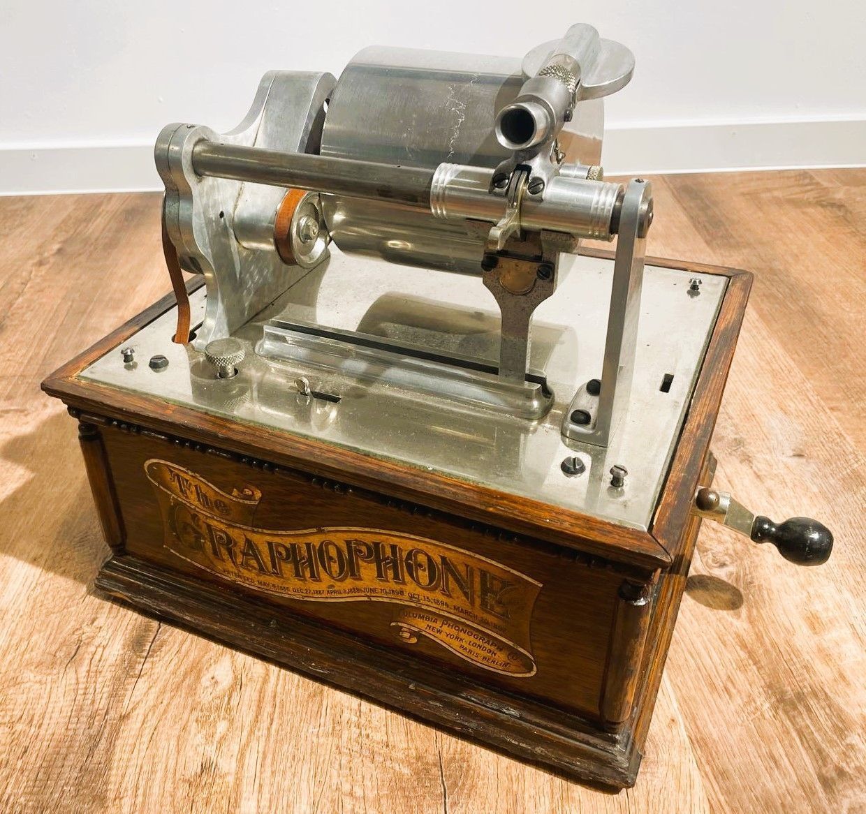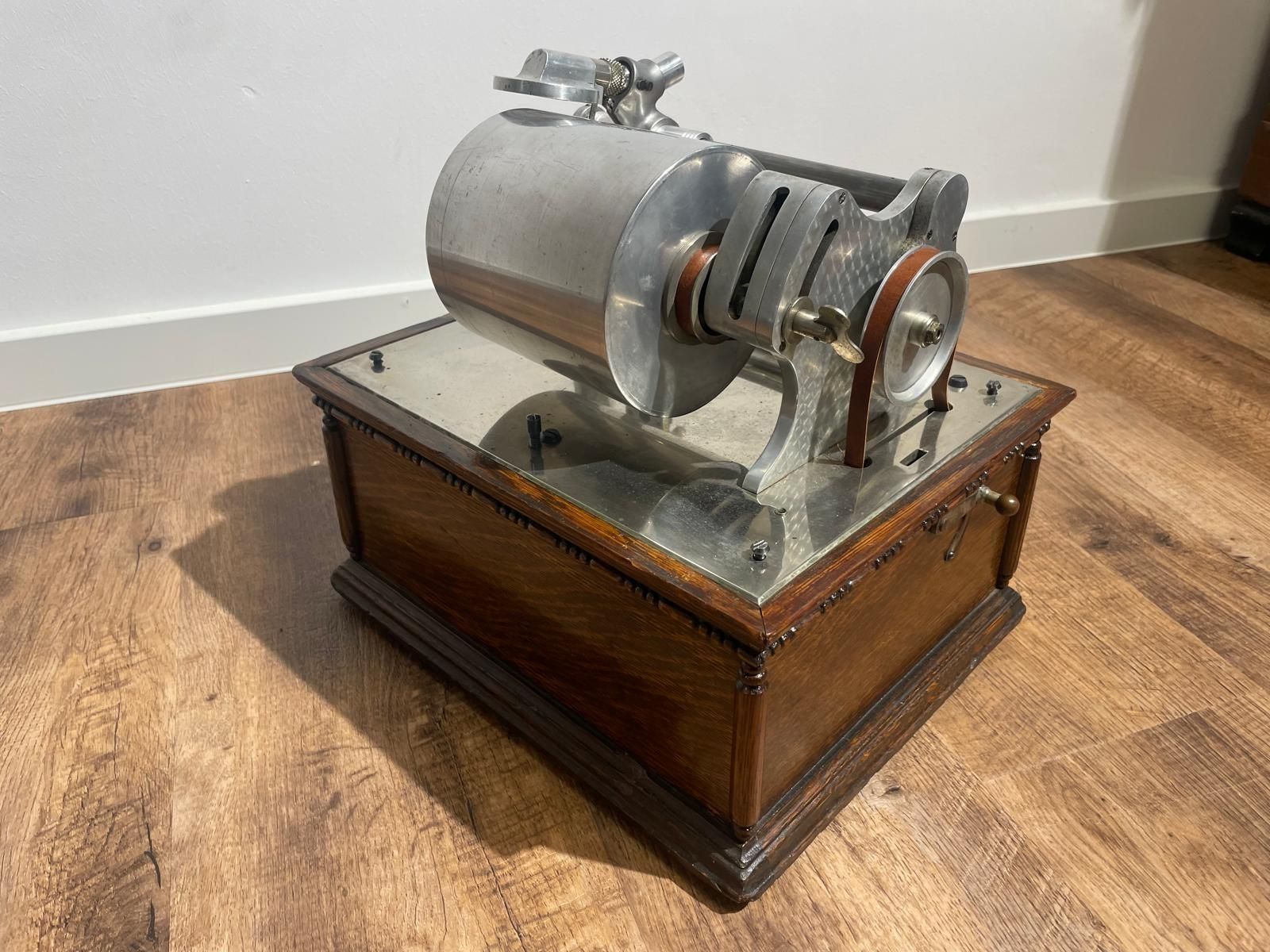 The specimen preserved in the Edisonium is fully original. It illustrates the experimental spirit of Columbia’s engineers around 1900, who attempted to broaden the market through technical innovation (such as dual drive belts) and versatile cylinder formats.