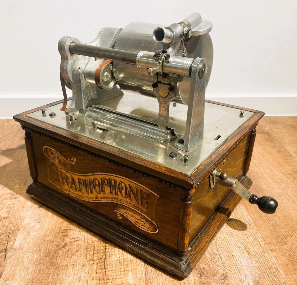 Reproducer: originally fitted with the #4 “Grand” aluminum reproducer; later often upgraded to the improved #5 (introduced in 1903 for $5.00, with Columbia offering a $2.00 trade-in allowance for older reproducers)
