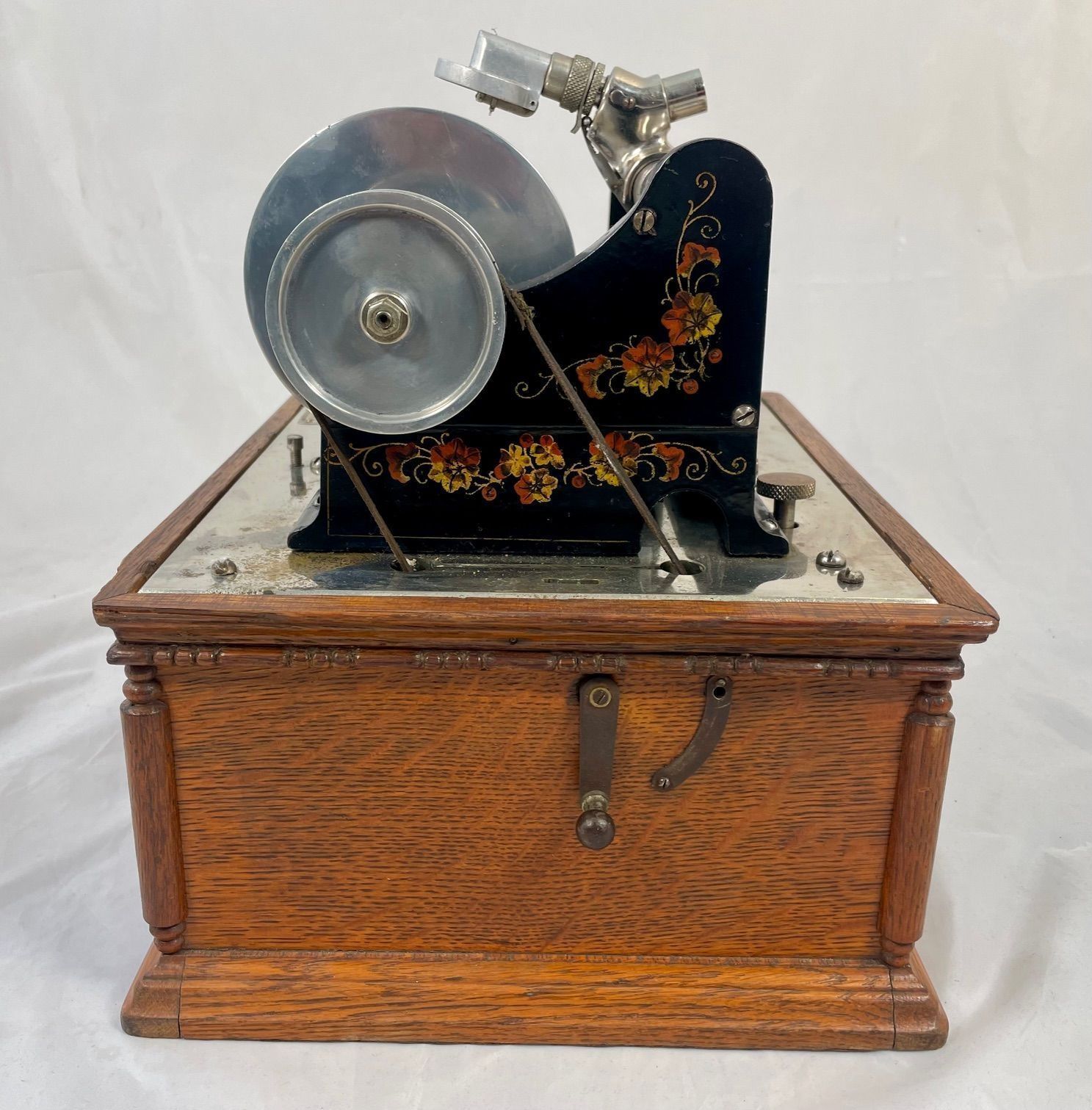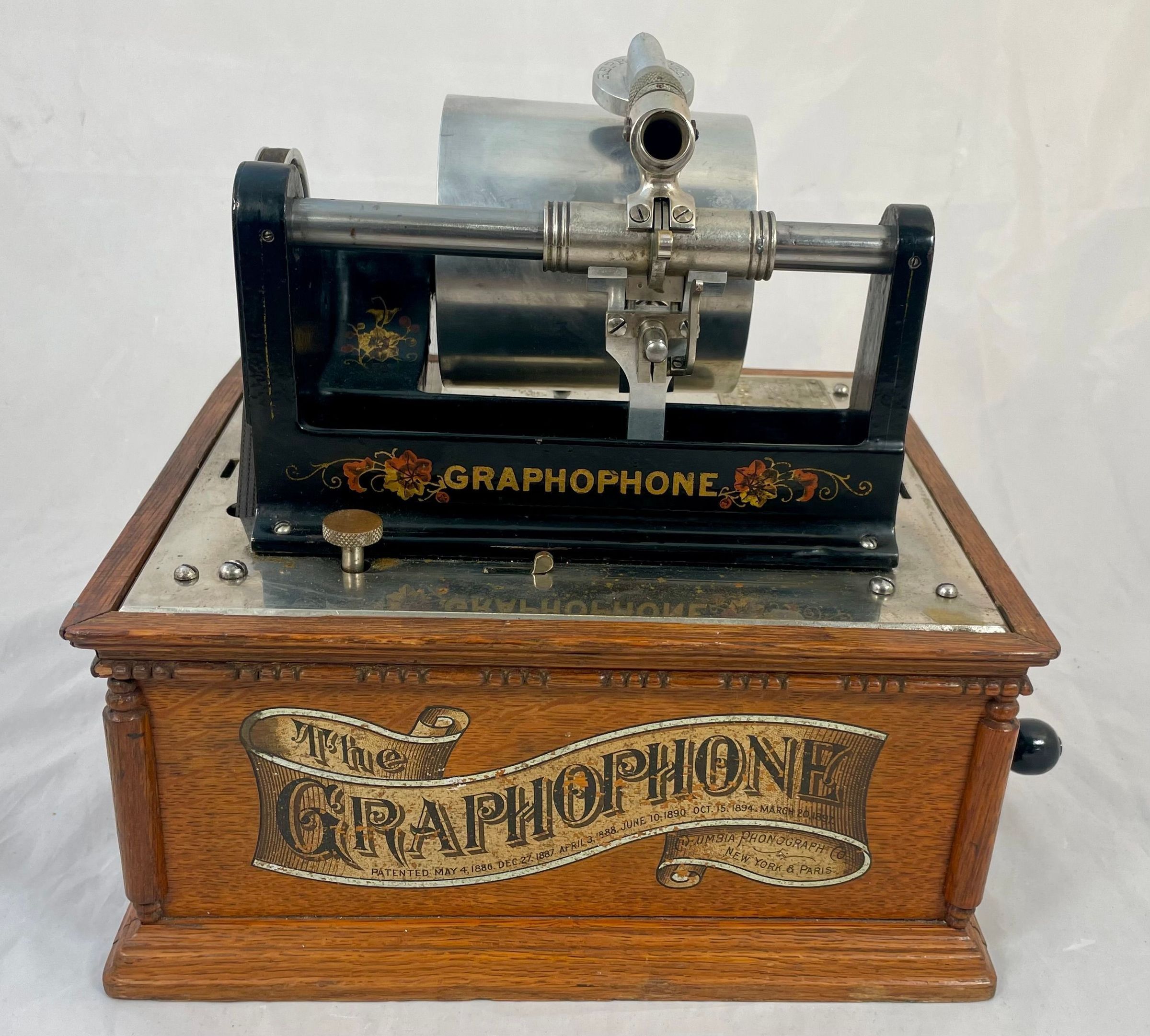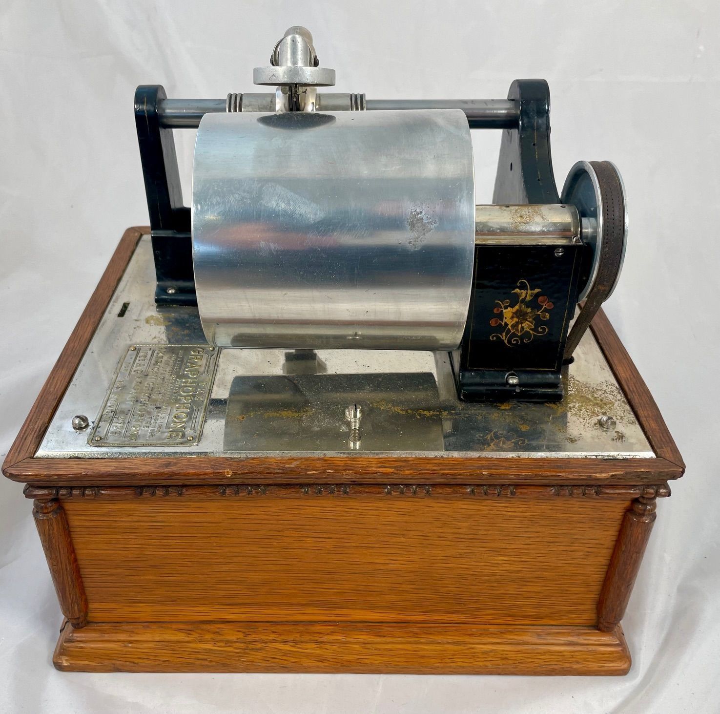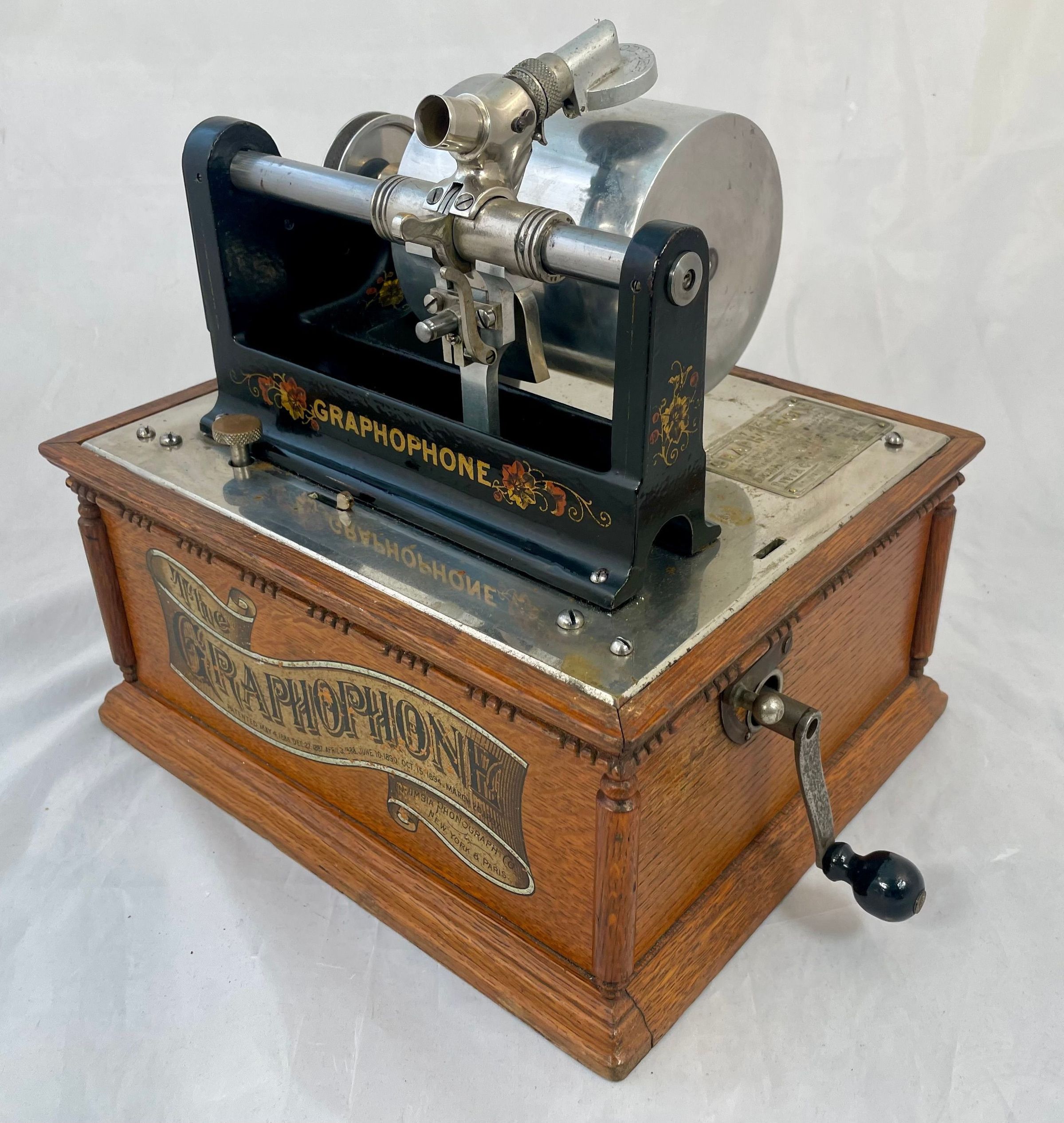 The specimen on display, serial number 2736, is completely preserved with its original reproducer and crank. It stands as an excellent example of this short but technically significant phase in phonograph development.