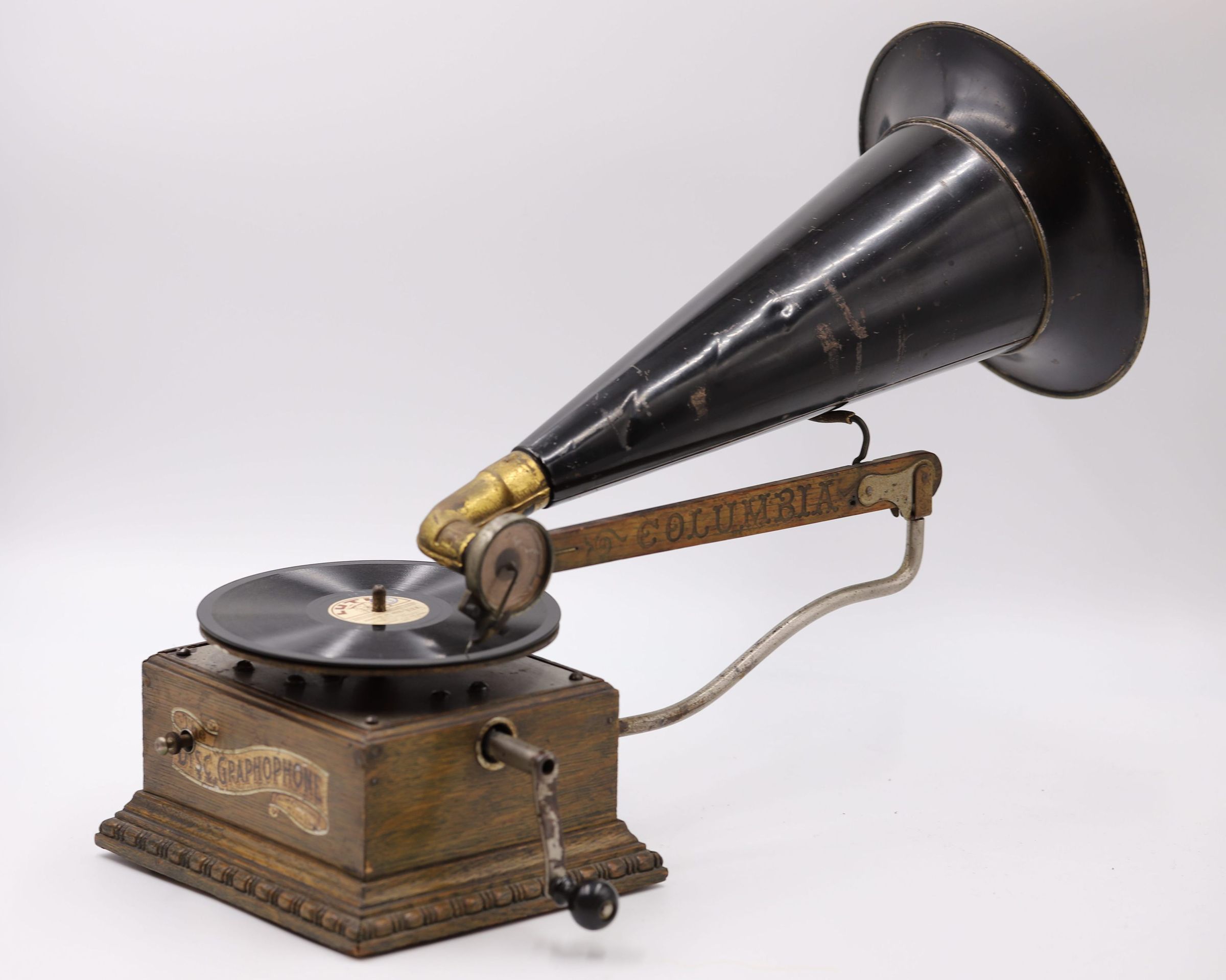 With the Graphophone Type AK, Columbia made its move from cylinders to disc records. It was one of the company’s very first commercial disc machines and represents an important transitional step between the cylinder Graphophones and the later disc Gramophones.
