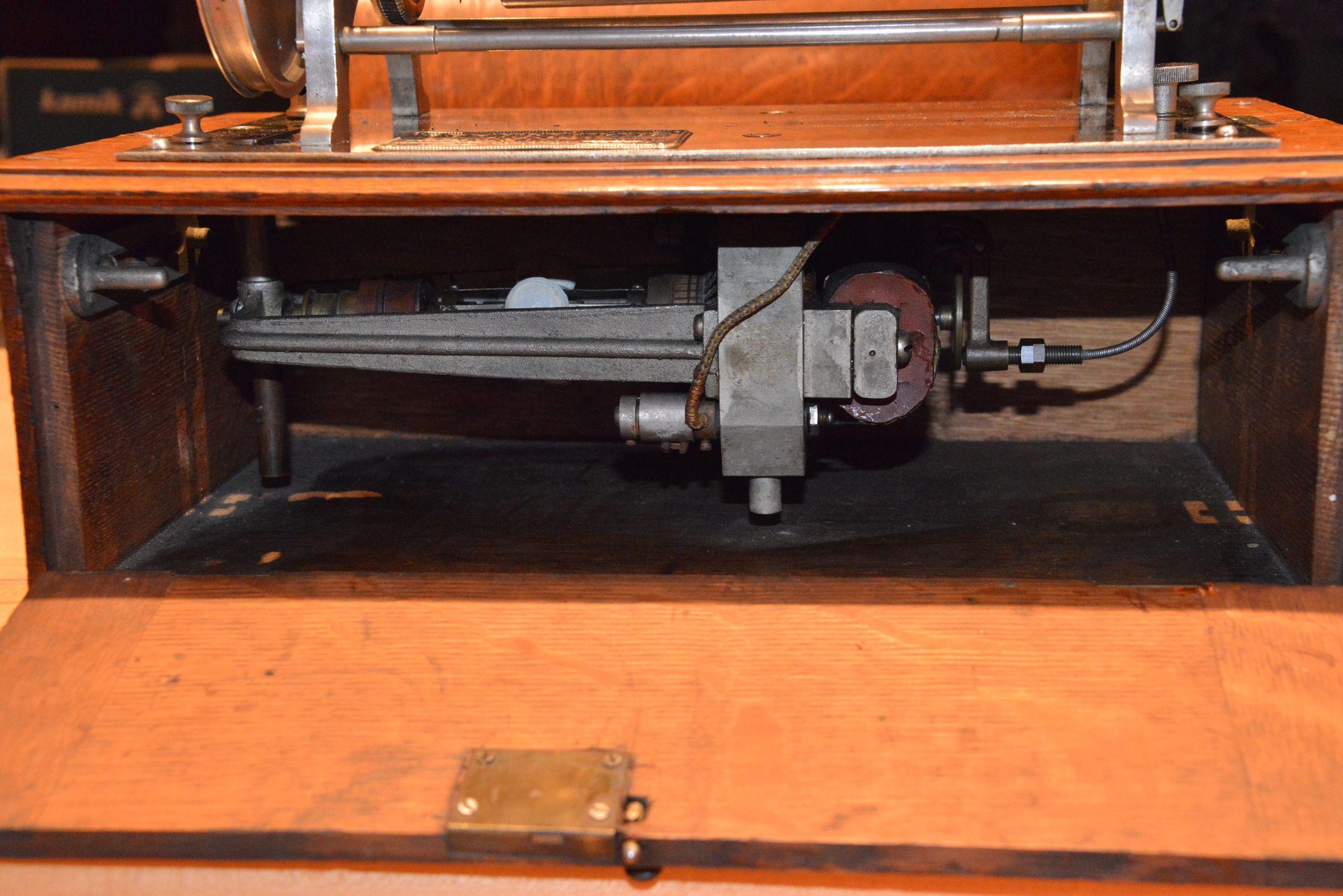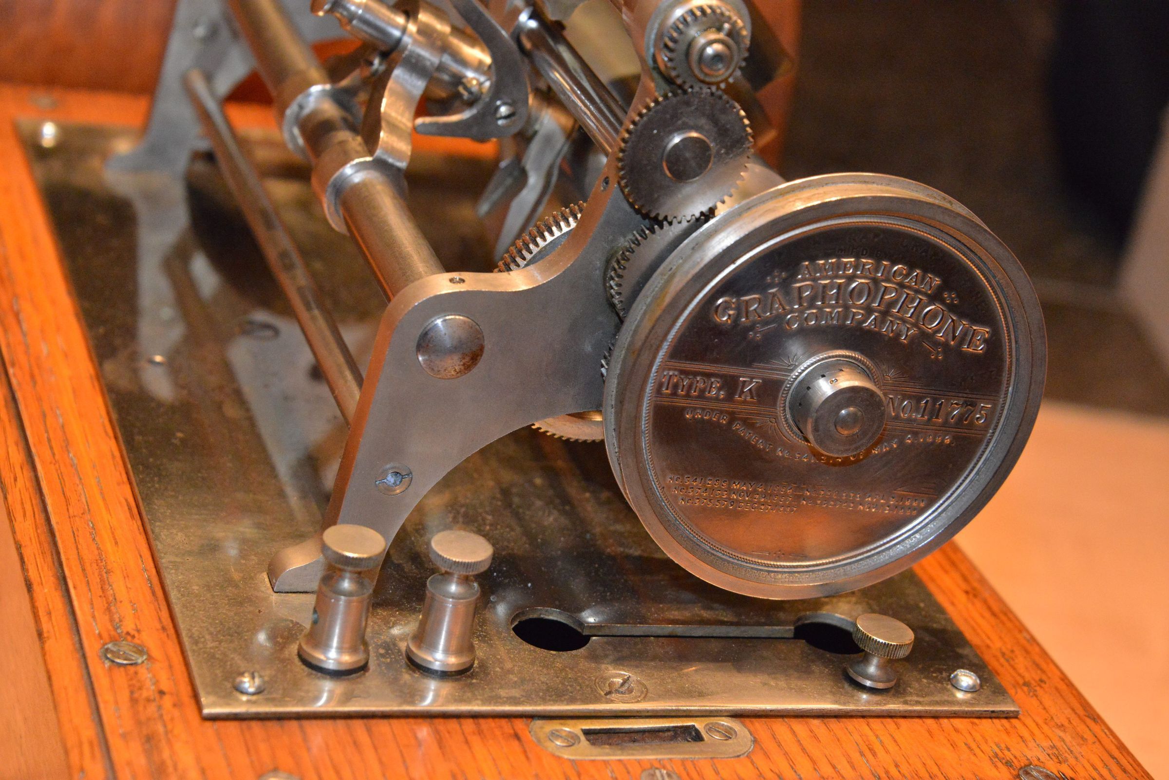 The Graphophone Type “K” was introduced in early 1895 during a transitional period between purely mechanical and electrically powered phonograph technology. It was developed in a time of financial strain: in 1894, the American Graphophone Company was left with large stocks of unsold treadle‑operated Graphophones. To make use of these, the upper works from treadle machines were mounted on new bases, paired with a newly developed electric motor, and marketed as the “Type K.” (One of these rare treadles is also on display here at the Edisonium!)