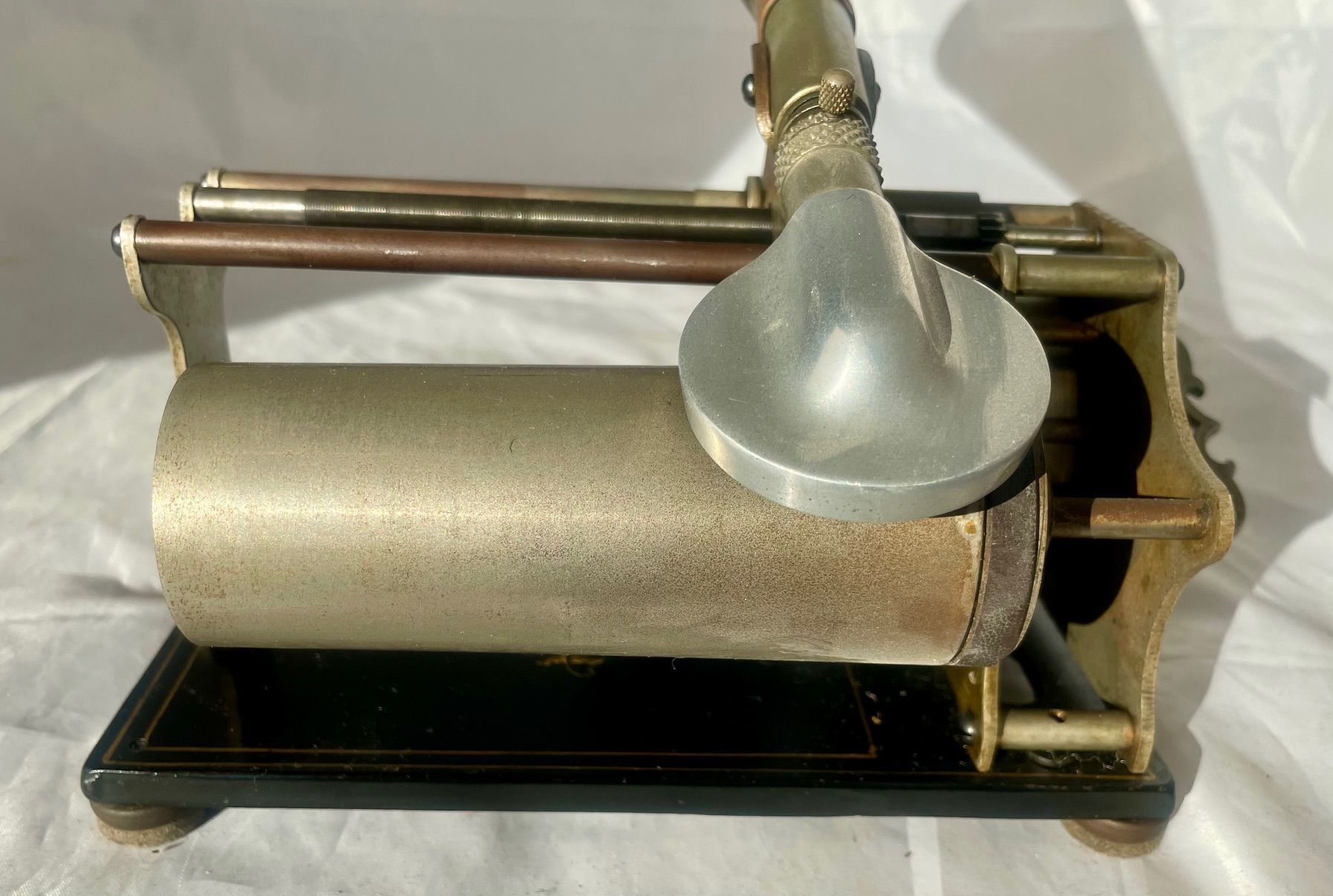 The example shown here represents the earliest version, built with only a simple metal base plate and no wooden cabinet. This stripped-down design made it the cheapest talking machine available at the time – yet it was also a milestone in phonograph history: for the first time, ordinary families could afford such a device.