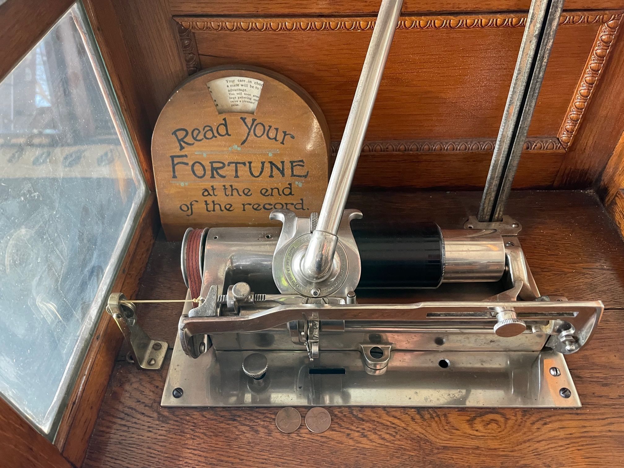 The concept was simple and clever: after inserting a coin (1 penny or 5 cents), the phonograph would not only play a cylinder record—it would also reveal a fortune to the customer via a mechanical mechanism.