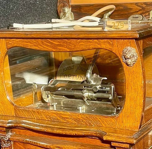 Today, the Mills Fortune Teller is an extreme rarity. The example shown here at the Edisonium (Box No. 241, inspected in April 1908) is one of only two known surviving original machines in the world.