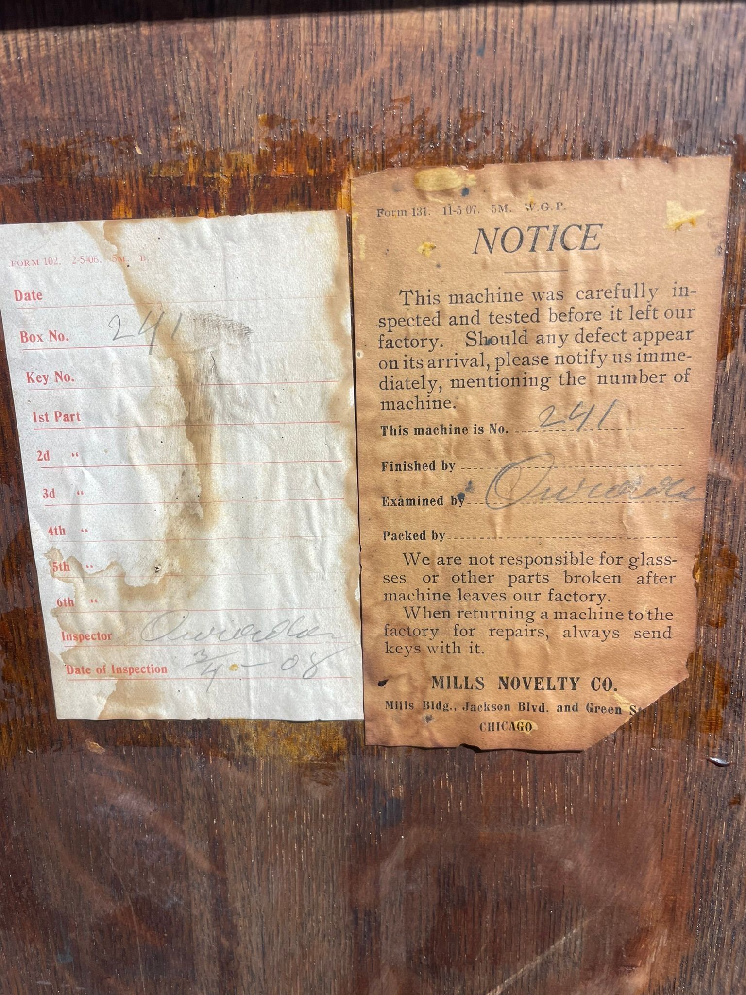 Model No. 241 – Inspected April 1908