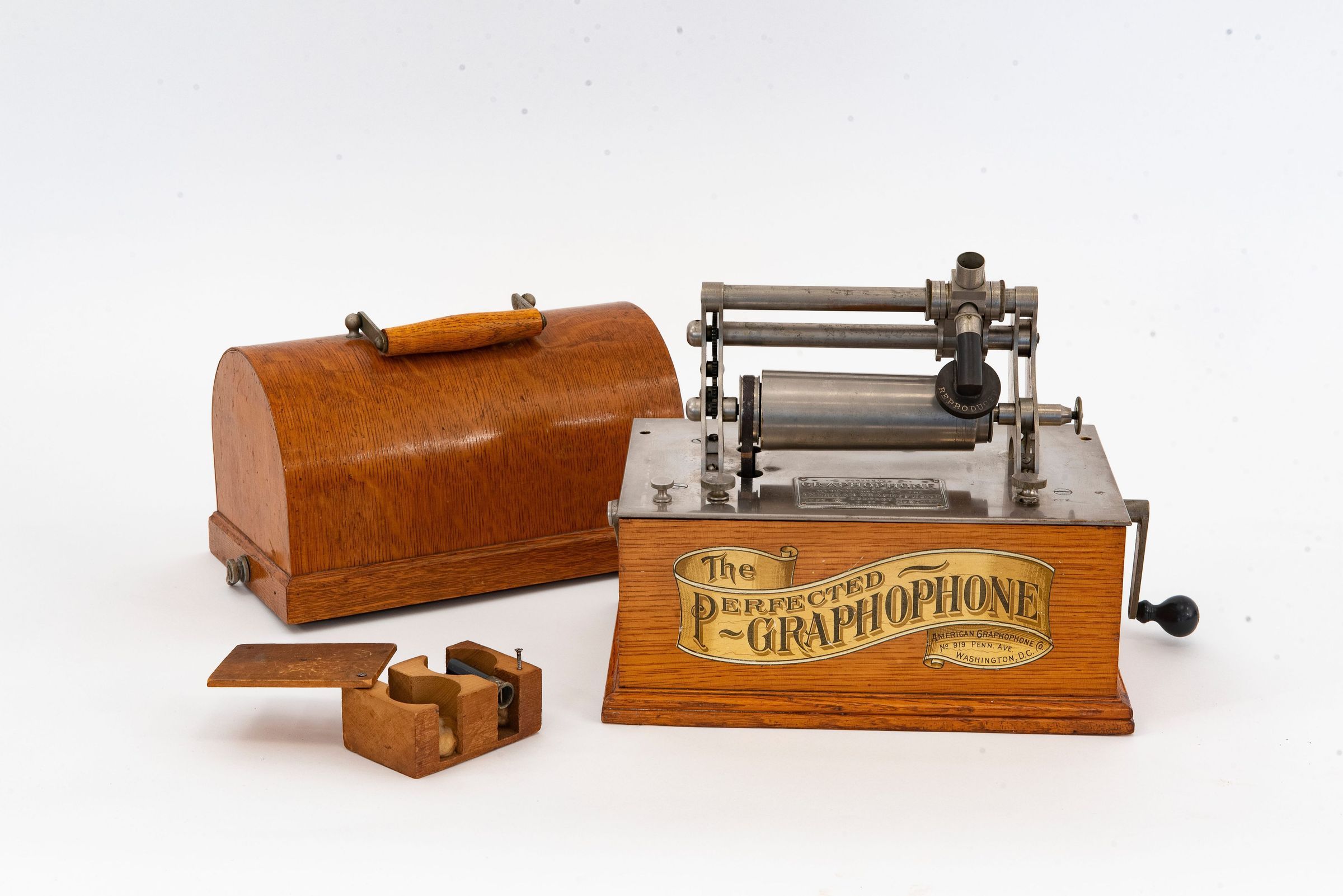 This rare device marks a historic turning point in the history of sound recording: it was the first Graphophone specifically designed for private domestic use – a true precursor of modern home entertainment. While earlier machines like the Edison Class M were intended solely for office dictation or public demonstrations, the Perfected Graphophone was built for the consumer market. It was the first fully re-engineered model following several stagnant years at the American Graphophone Company and laid the foundation for the highly successful models that followed, including the Type N, A, AT, and Q.