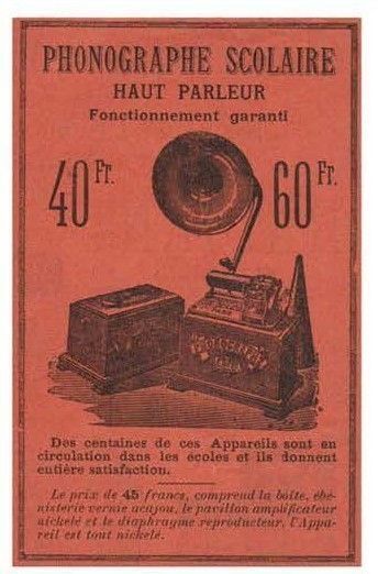 Advertisements promised “guaranteed operation” and praised the high satisfaction among hundreds of units already in circulation. Prices ranged from 40 to 60 francs, depending on equipment and accessories. The package included the phonograph, the large loudspeaker horn, and the matching soundbox.