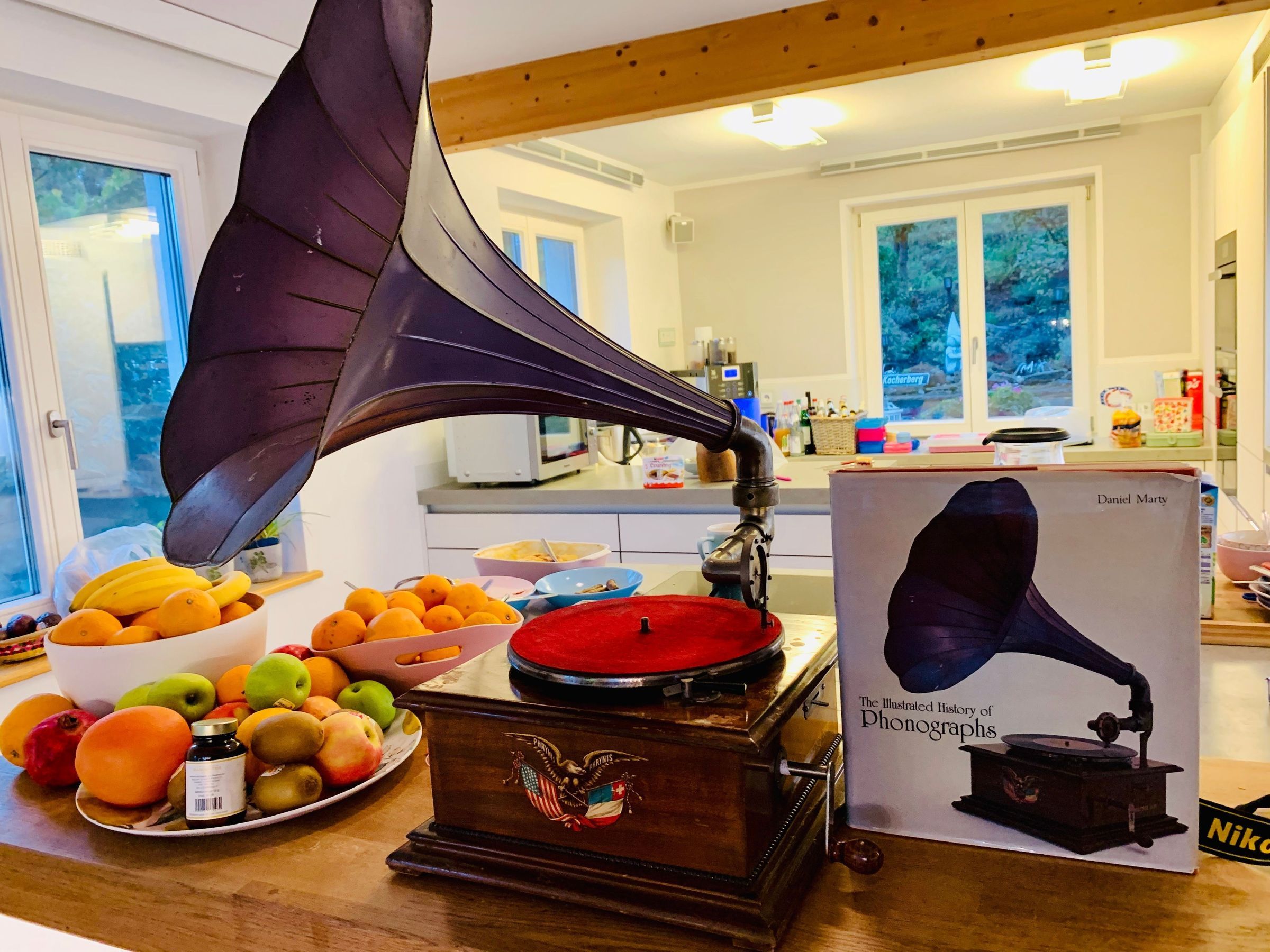 The PHRYNIS No. 10 displayed at the Edisonium is identical to the gramophone chosen by Daniel Marty as the cover image of his book.