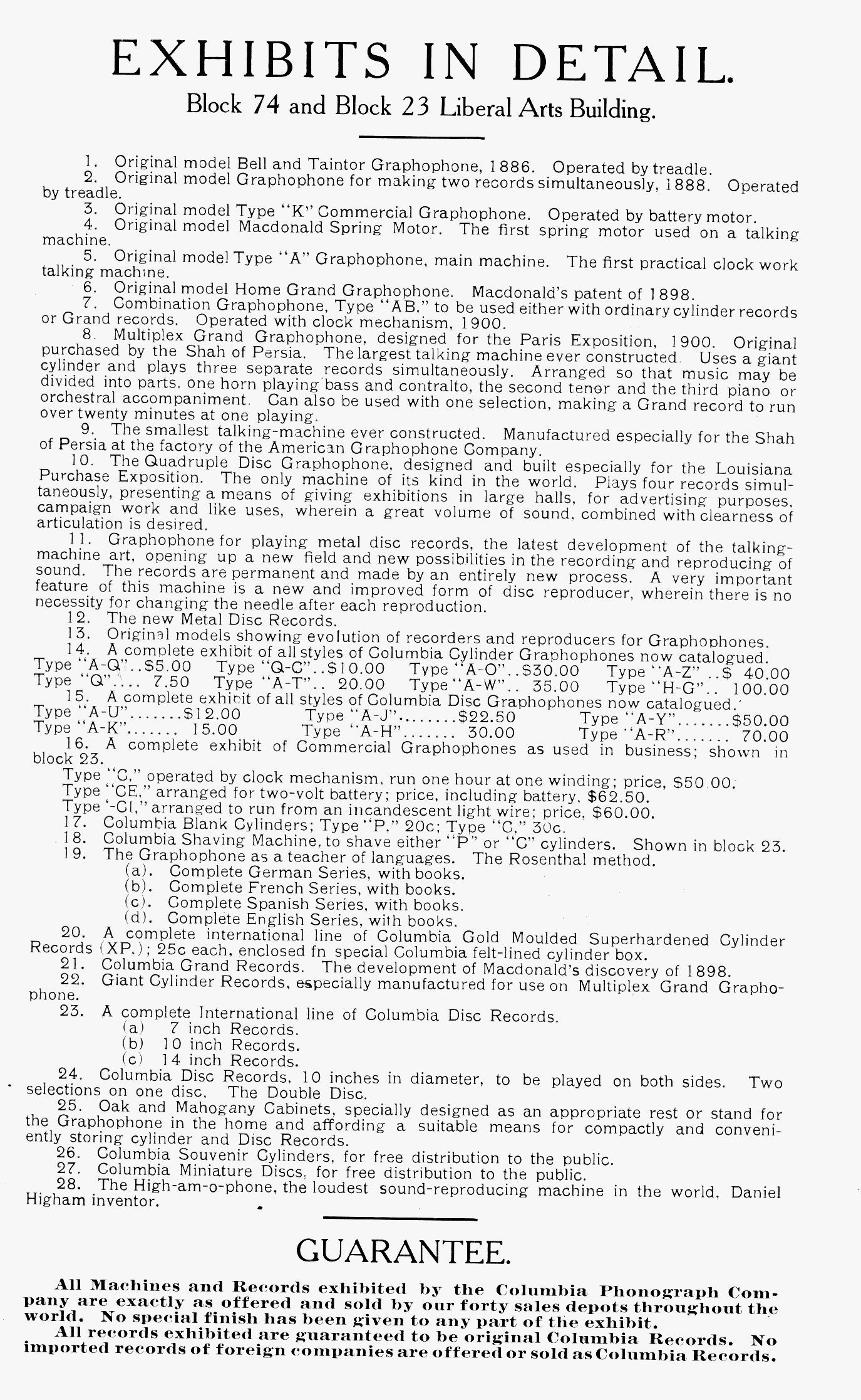 The machine was presented by the American Graphophone Company as “Exhibit No. 9” at the 1904 St. Louis World’s Fair, alongside the technically elaborate Multiplex Grand phonograph. (See the official exhibitor list shown here.) While the Multiplex was considered the largest sound playback device of its time, this miniature model served as a deliberate technological and aesthetic counterpoint.