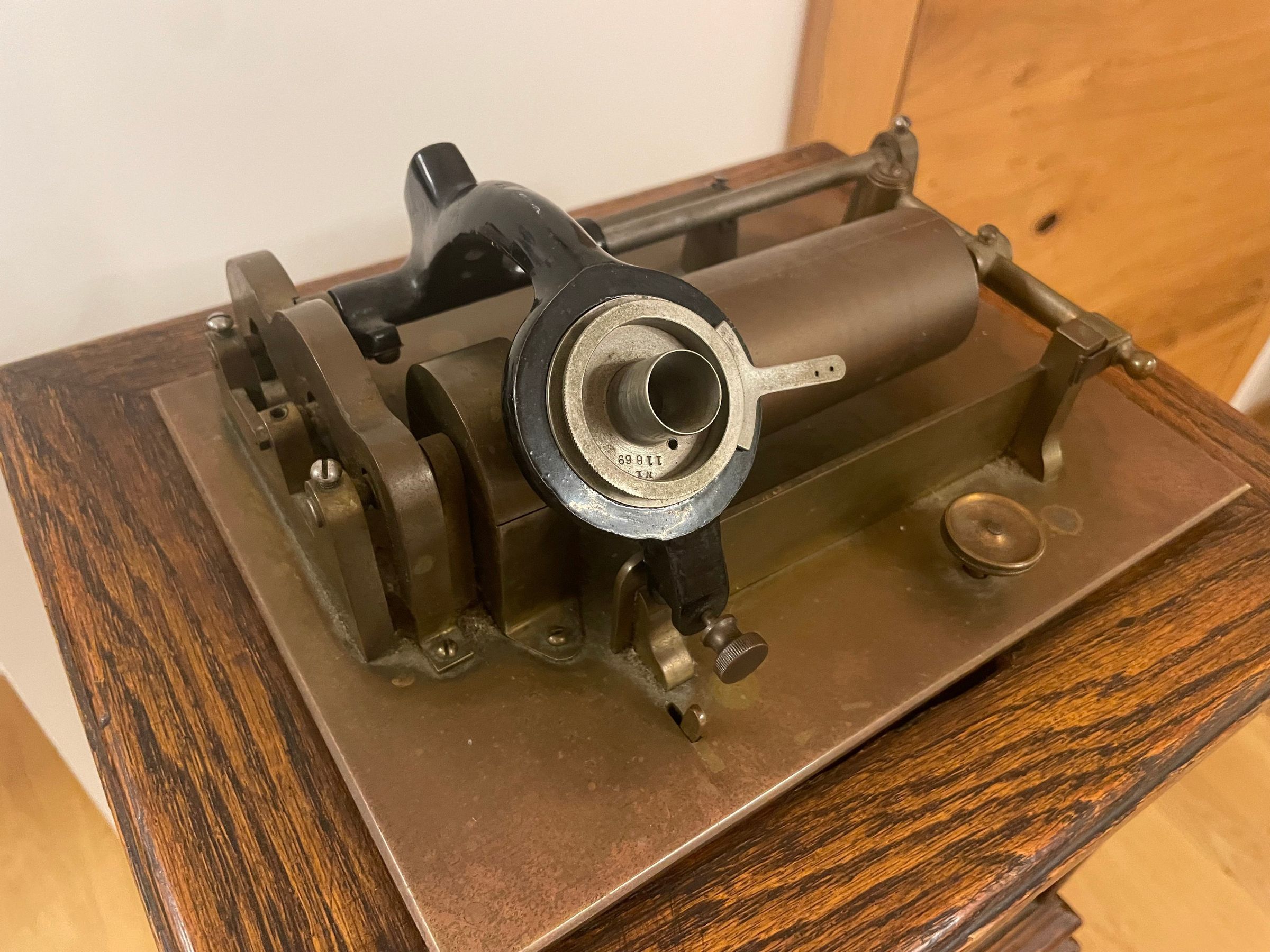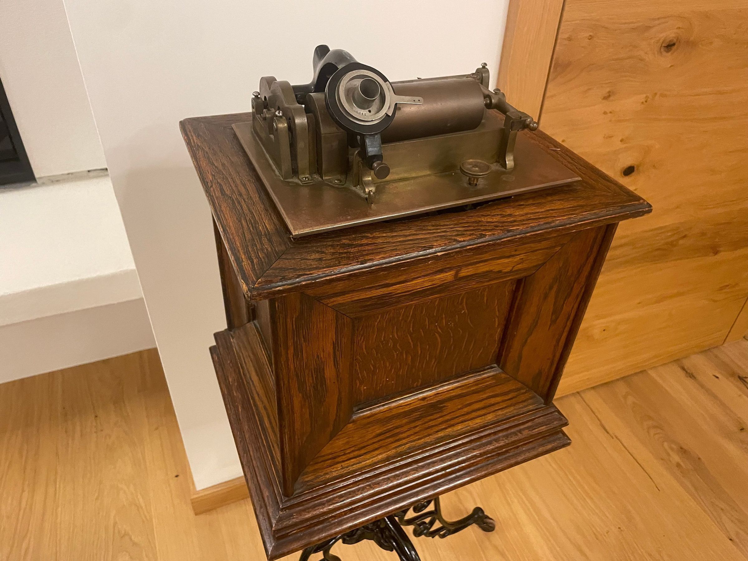 This phonograph is so far unique and stands as a testament to the experimental spirit of the early phonograph era. It combines the familiar styling of a production machine with a drive system far ahead of its time. Its rarity, outstanding craftsmanship, and excellent preservation make it one of the most remarkable exhibits in the Edisonium Mariazell.