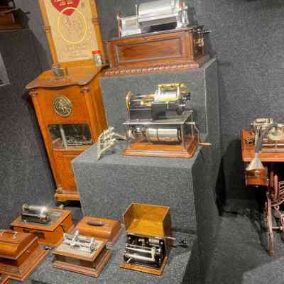 A remarkable feature of this exhibit is the surviving original giant wax cylinder, along with an original reproducer. The version on display at the Edisonium uses only one reproducer, allowing for extended playback of up to 20 minutes per cylinder. In the original three-reproducer setup, all tracks could be played simultaneously – but with a reduced runtime of approx. 6 minutes.