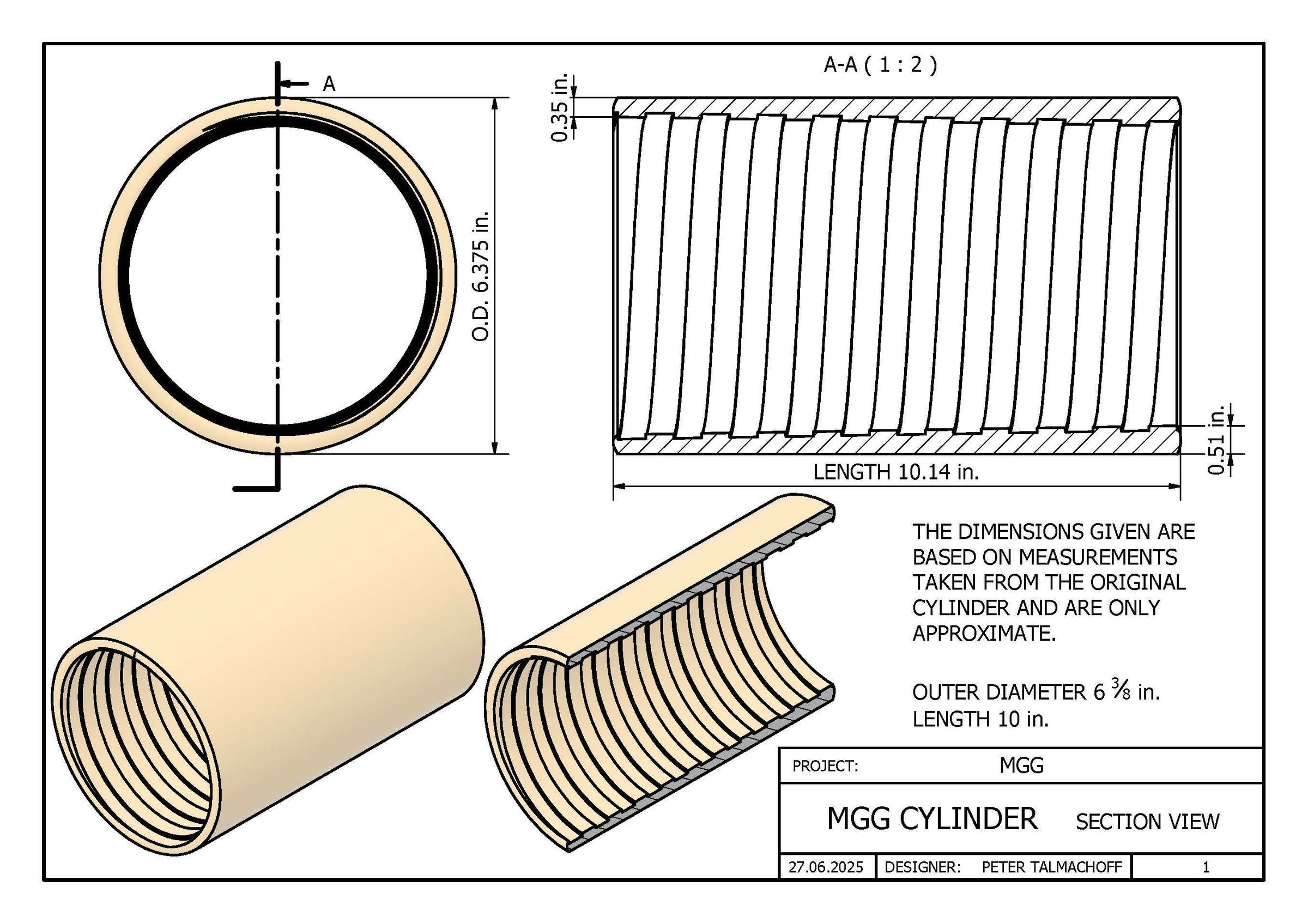 Mandrel (Cylinder Core) Dimensions: