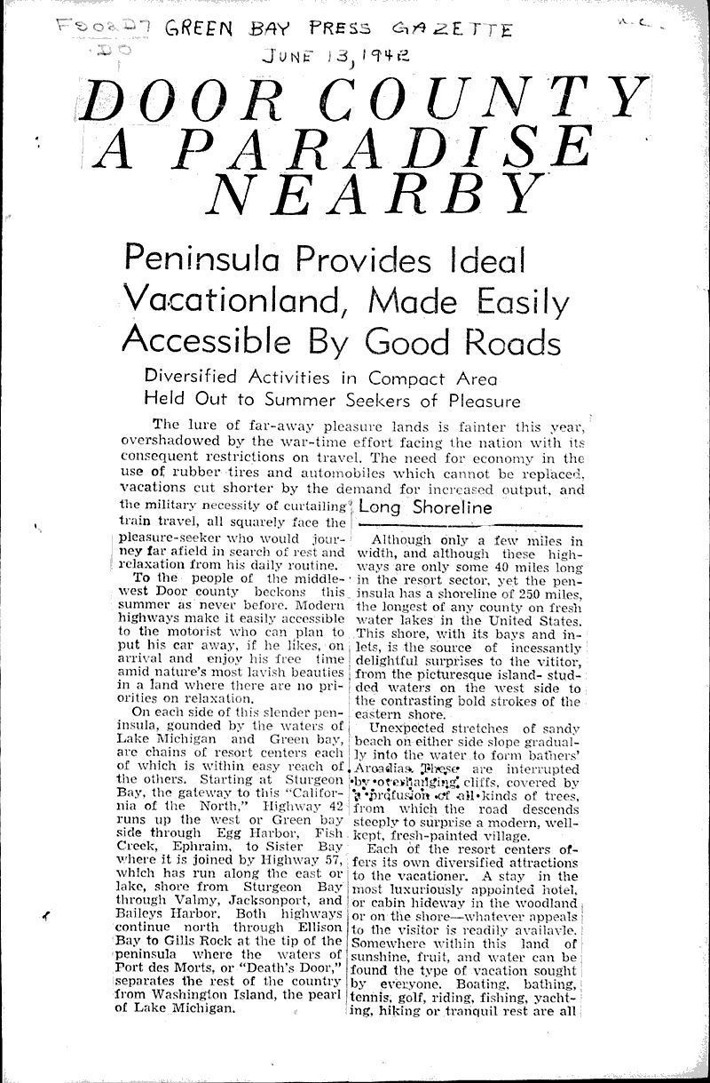 June 13,1942 Green Bay Press Gazette Article.Cataloged By