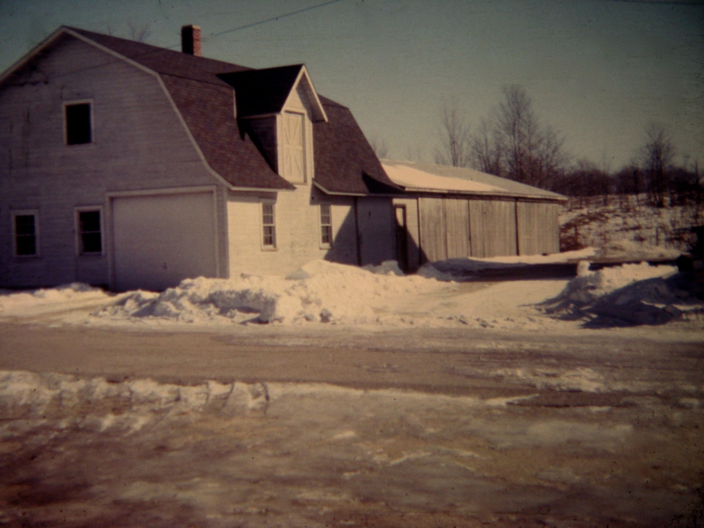 Barn on the upper level of Horseshoe Bay Farms property in winter; unknown date.Collection
