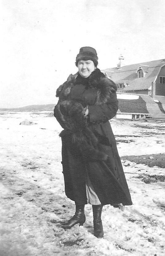 "Aunt Lydia?" photographed in winter on the grounds of Horseshoe Bay Farms. Unknown date.Photograph Details