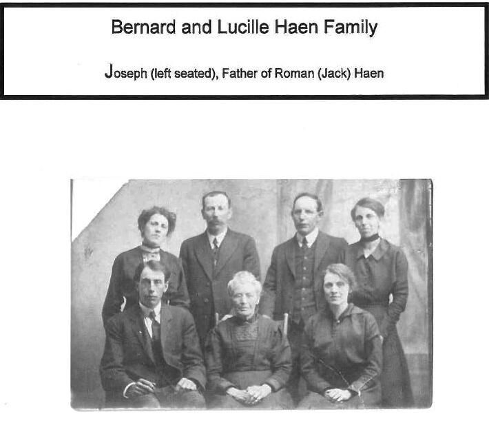Caption reads: "Bernard and Lucille Haen Family. Joseph (left seated), Father of Roman (Jack) Haen.Photograph Details