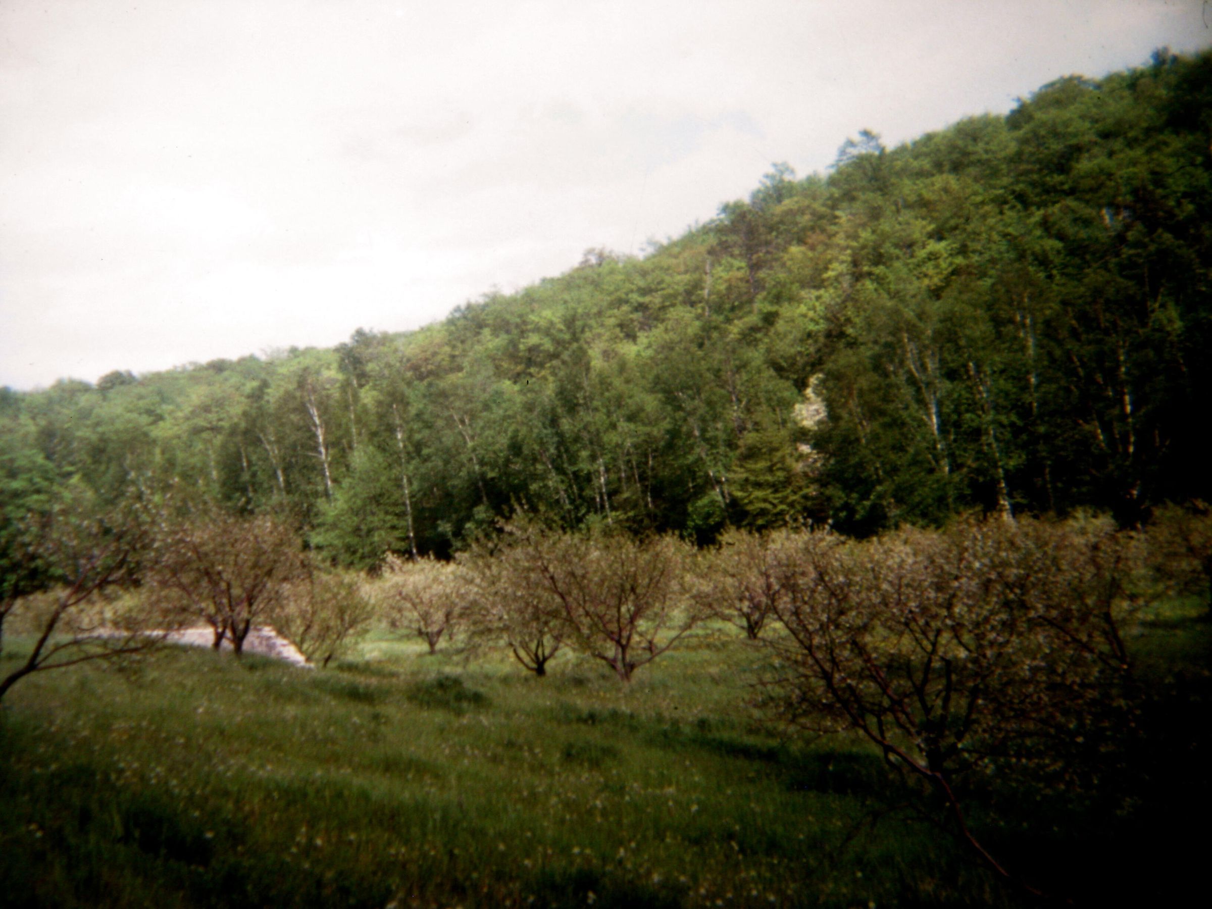 Orchard below the bluff during spring blossom time on Horseshoe Bay Farms, Unknown Date.Photograph Details