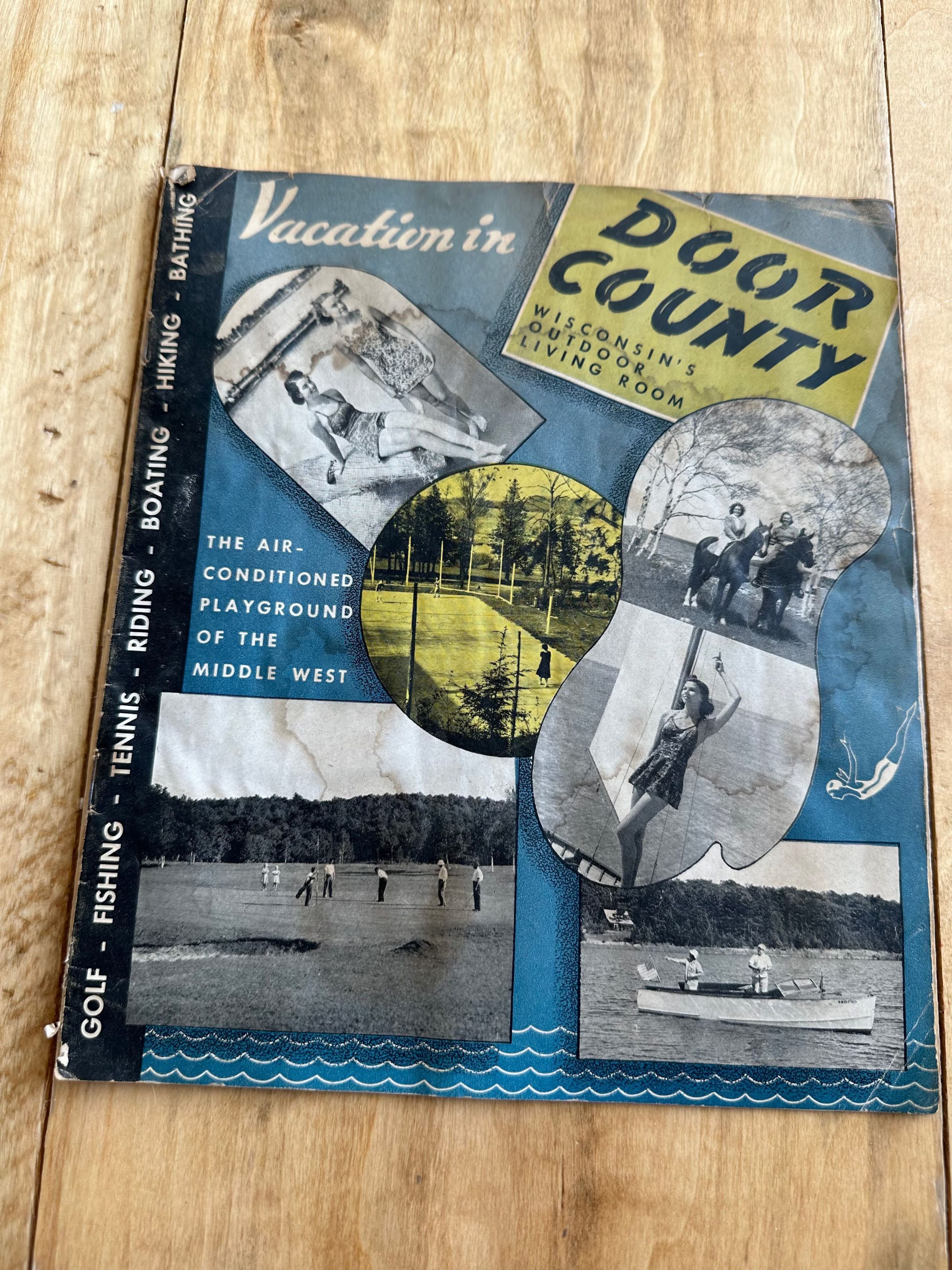 1945 publication of "Vacation in Door County" detailing recreational activities in the region. Presumably sponsored by the Door County Chamber of Commerce.Cataloged By