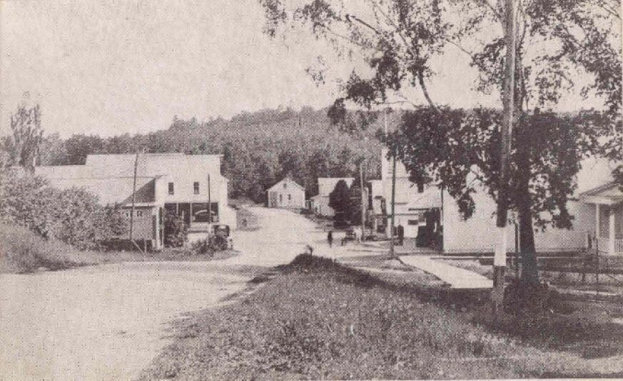 Village of Egg Harbor scene looking from the north. The first school house is at the bottom of the hill. The school served the village from around 1876 to 1912. The Harbor Inn is on the left.Photograph Details