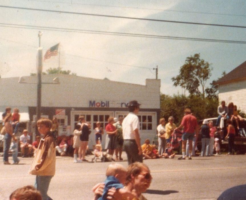 Celebrations outside Harvey Haen's Service Station at Egg Harbor's downtown intersection on the 4th of July. Year unknown.Photograph Details