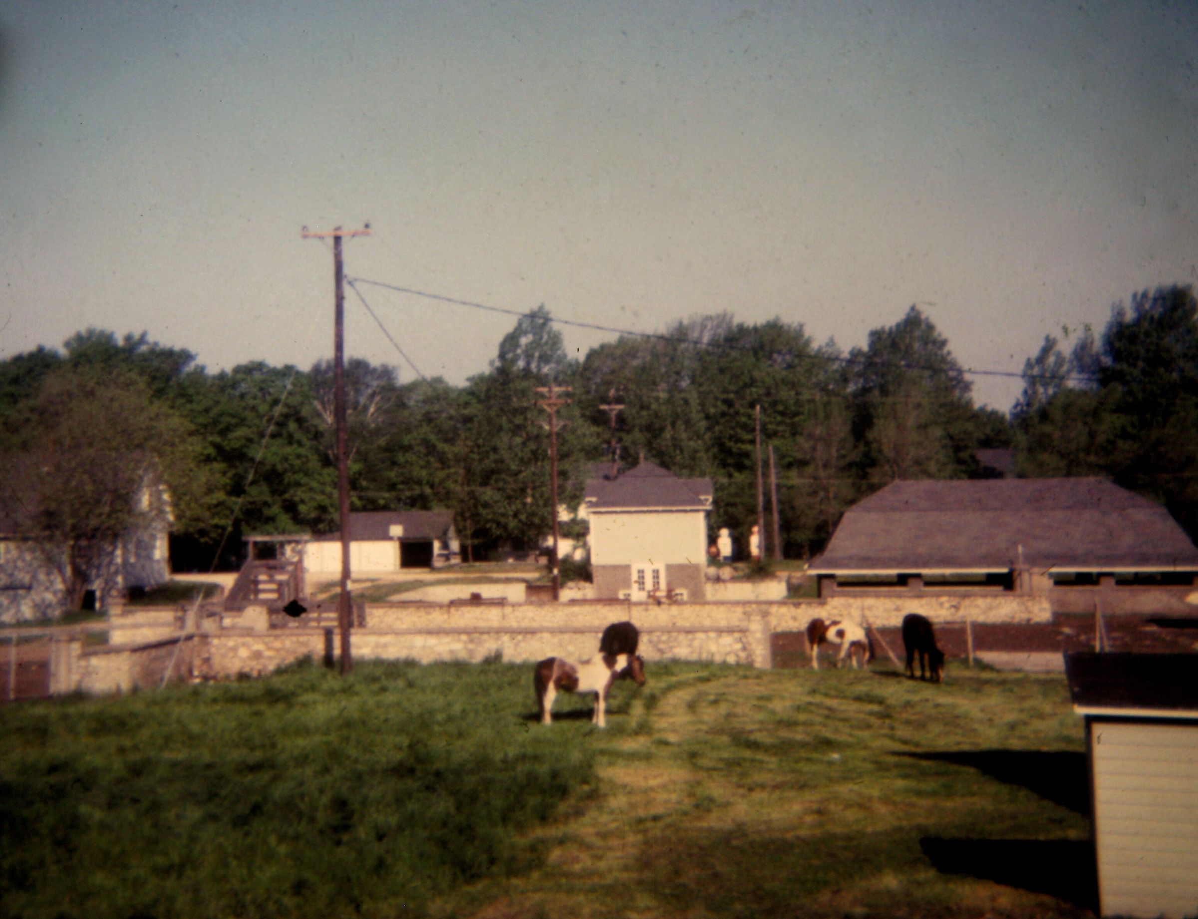 Horses in one of the several stone fenced paddocks at Horseshoe Bay Farms. Unknown date.Photograph Details