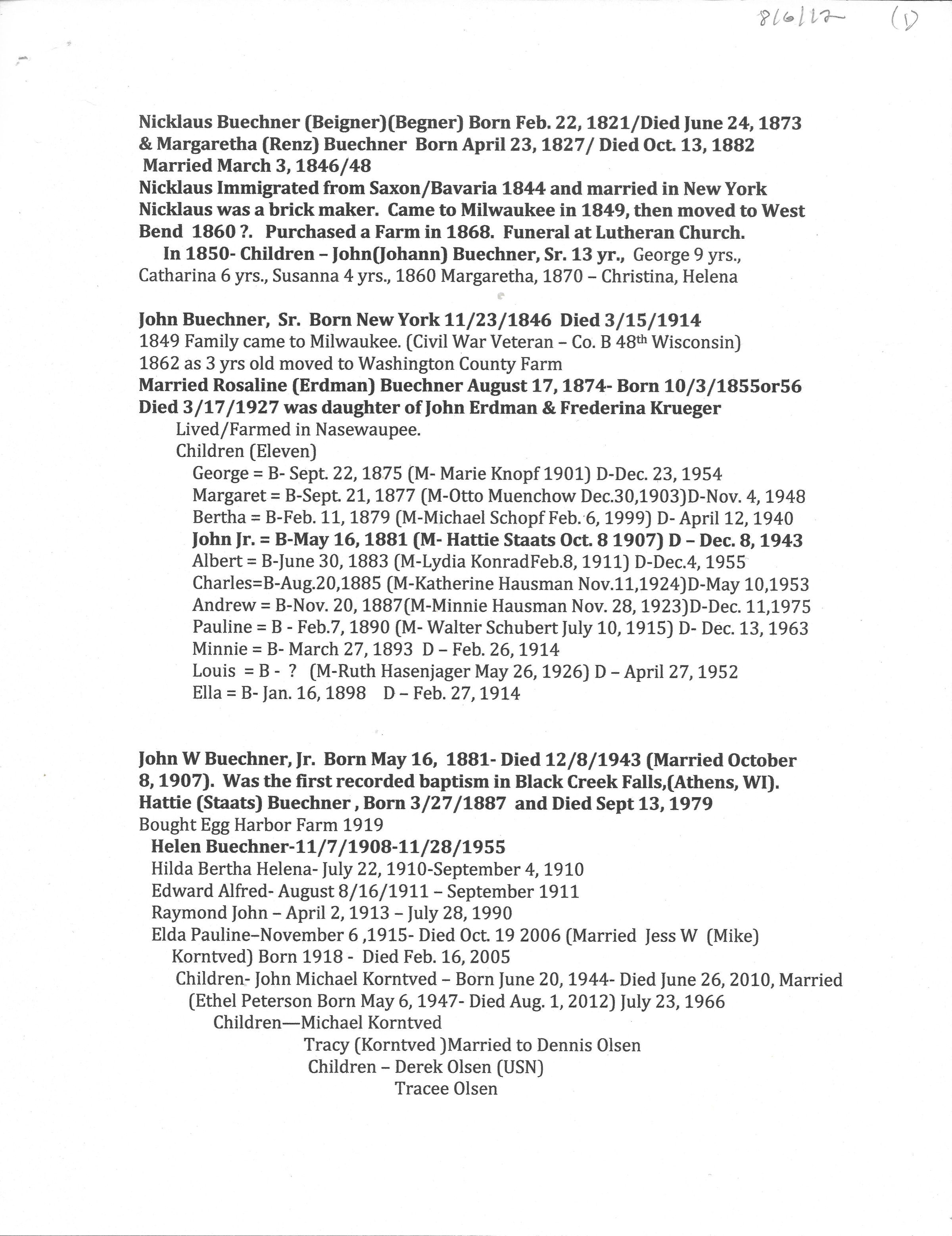 Photos and Documents relating to Johann Buechner Sr. and his family.Cataloged By